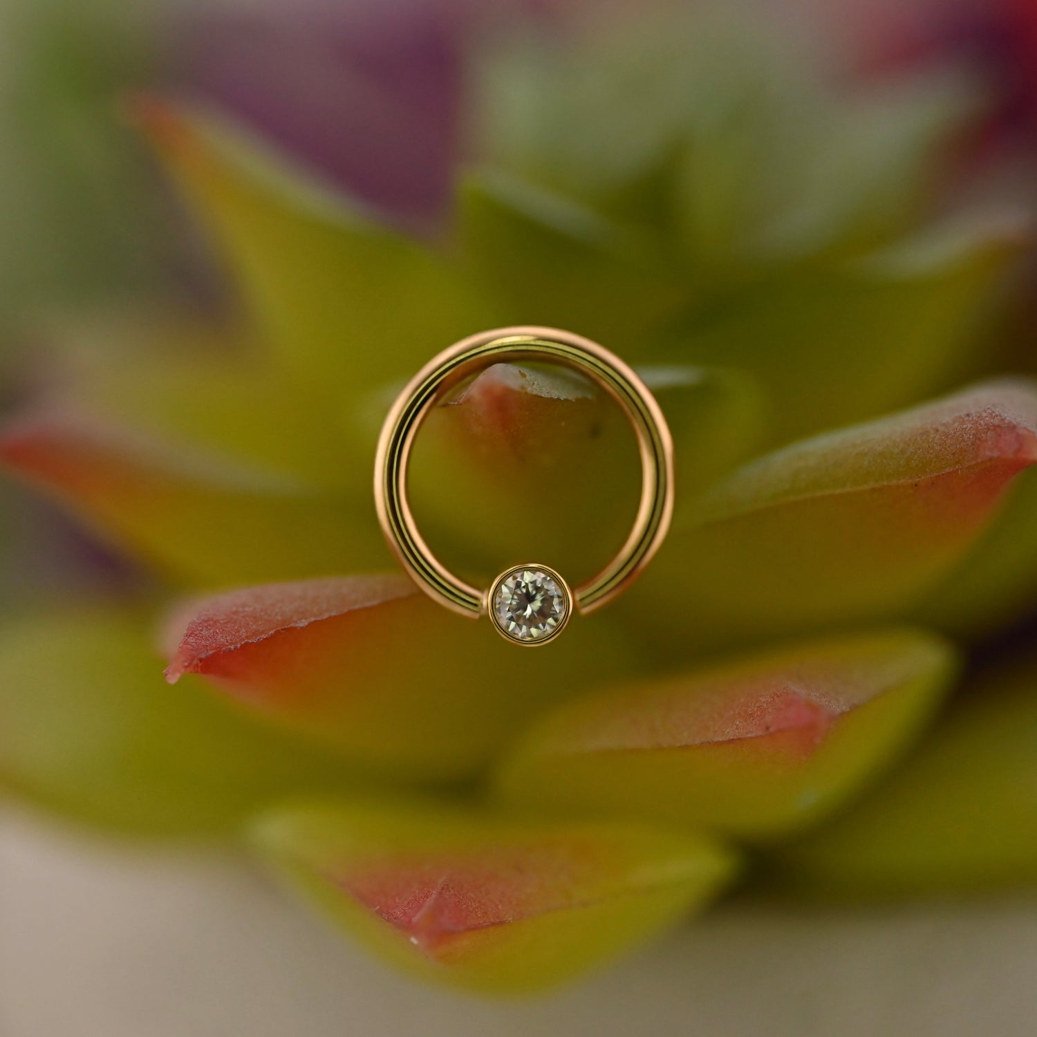 14K Gold Seam Ring with 2.5mm Open Back Bezel set Gemstone.