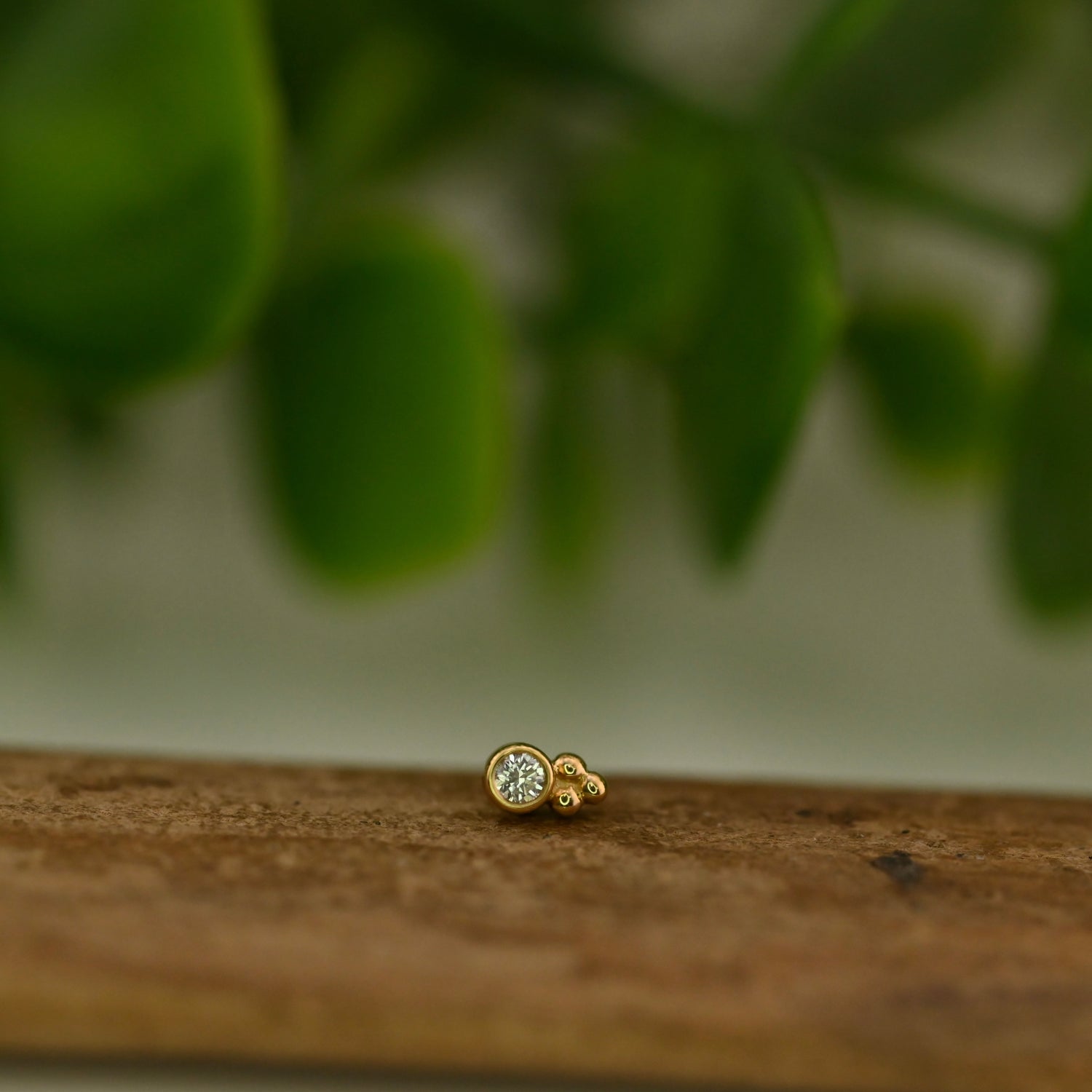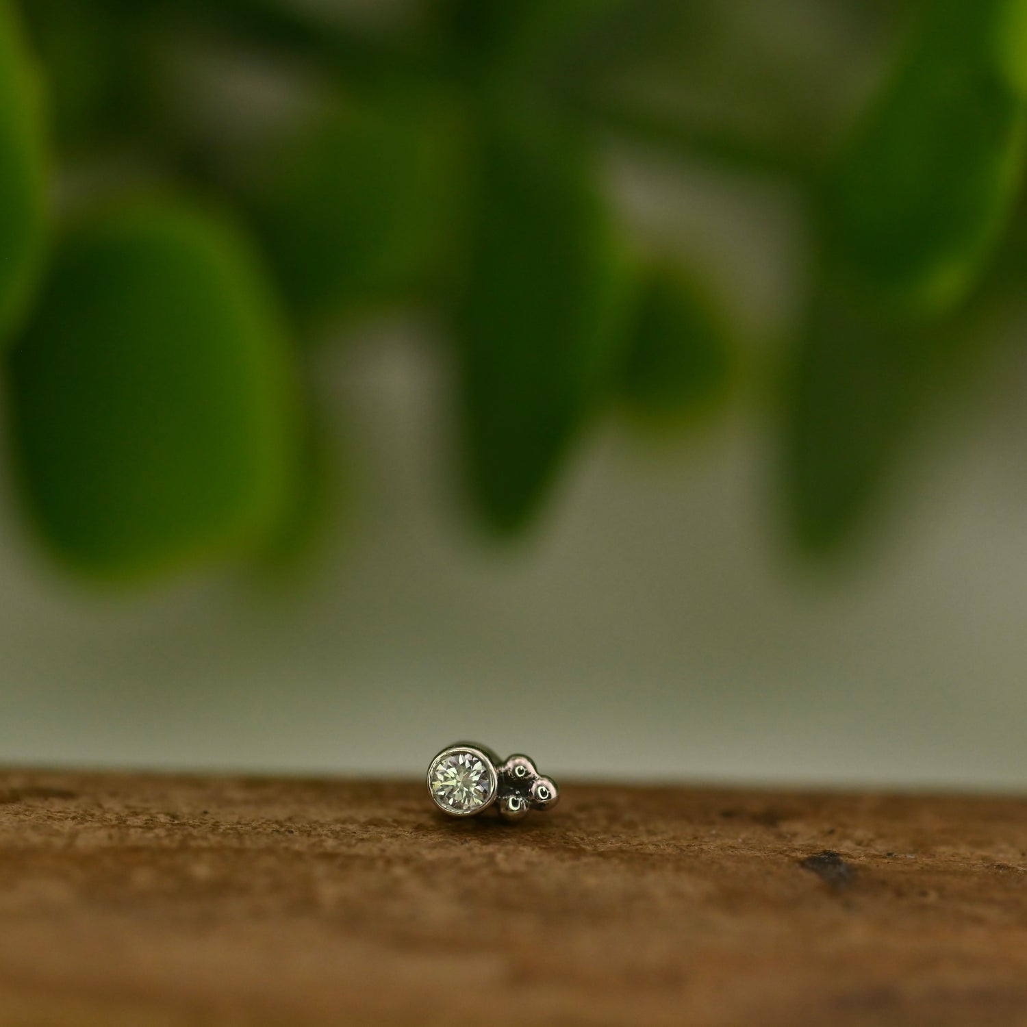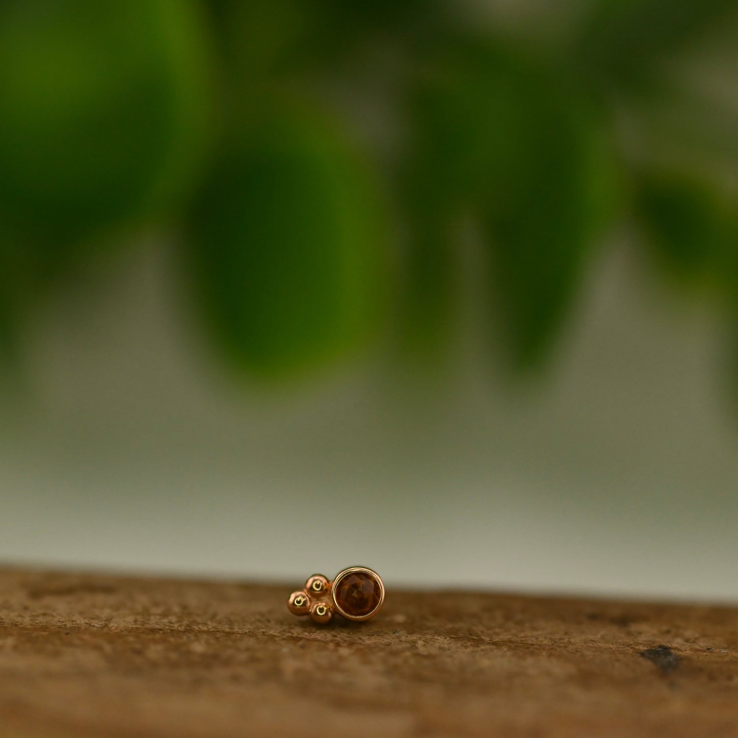This elegant piece of jewelry in 14k Gold featuring a 2mm Bezel Set Gemstone with a tri-bead accent is sure to be an eye-catching accent to any look. Wear it alone or pair it with other pieces to create your own unique look.