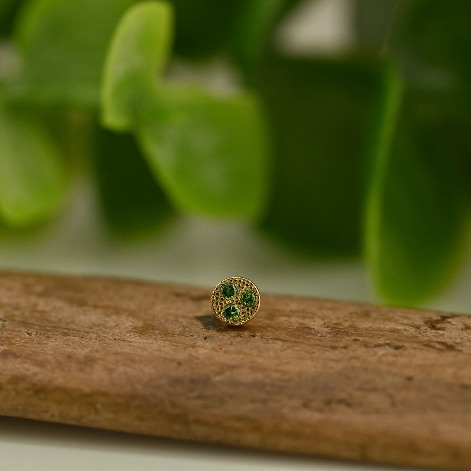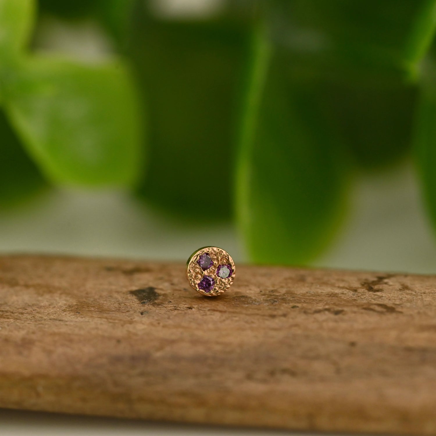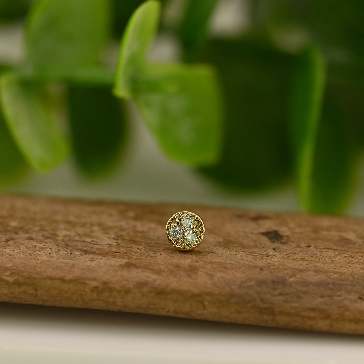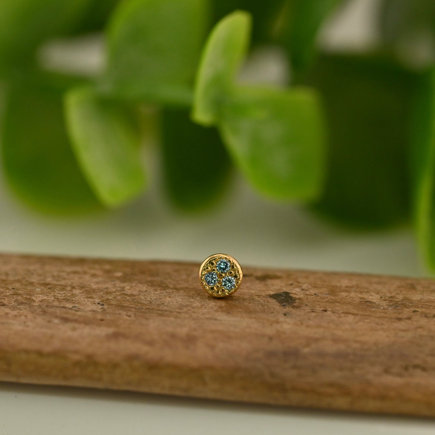 14K Gold Pave Texture Disc with (3) x 1mm Gems
