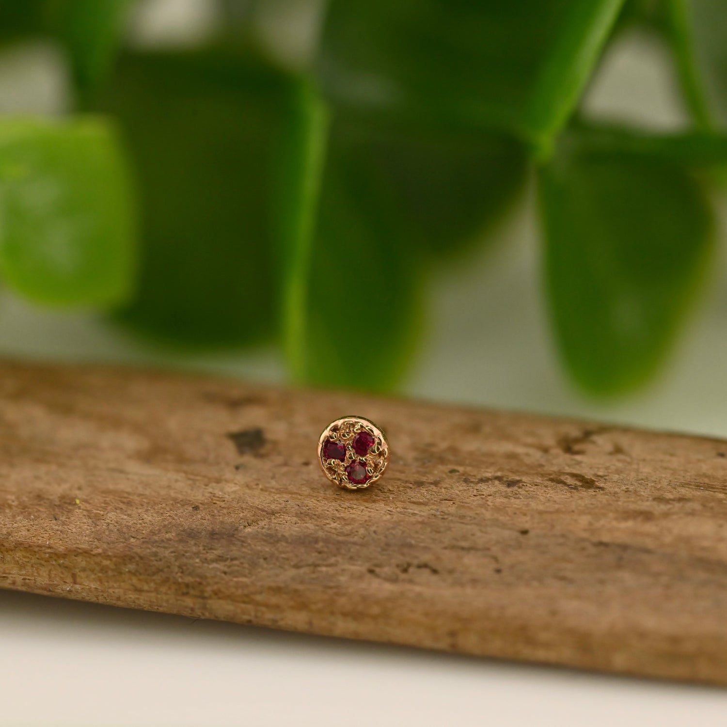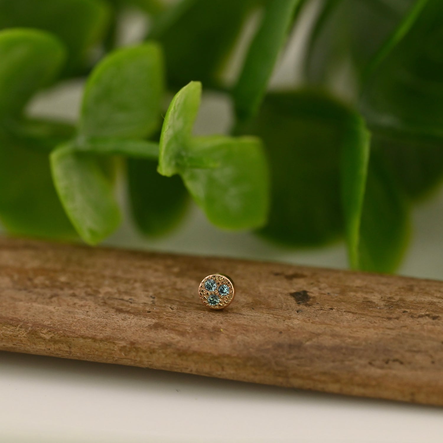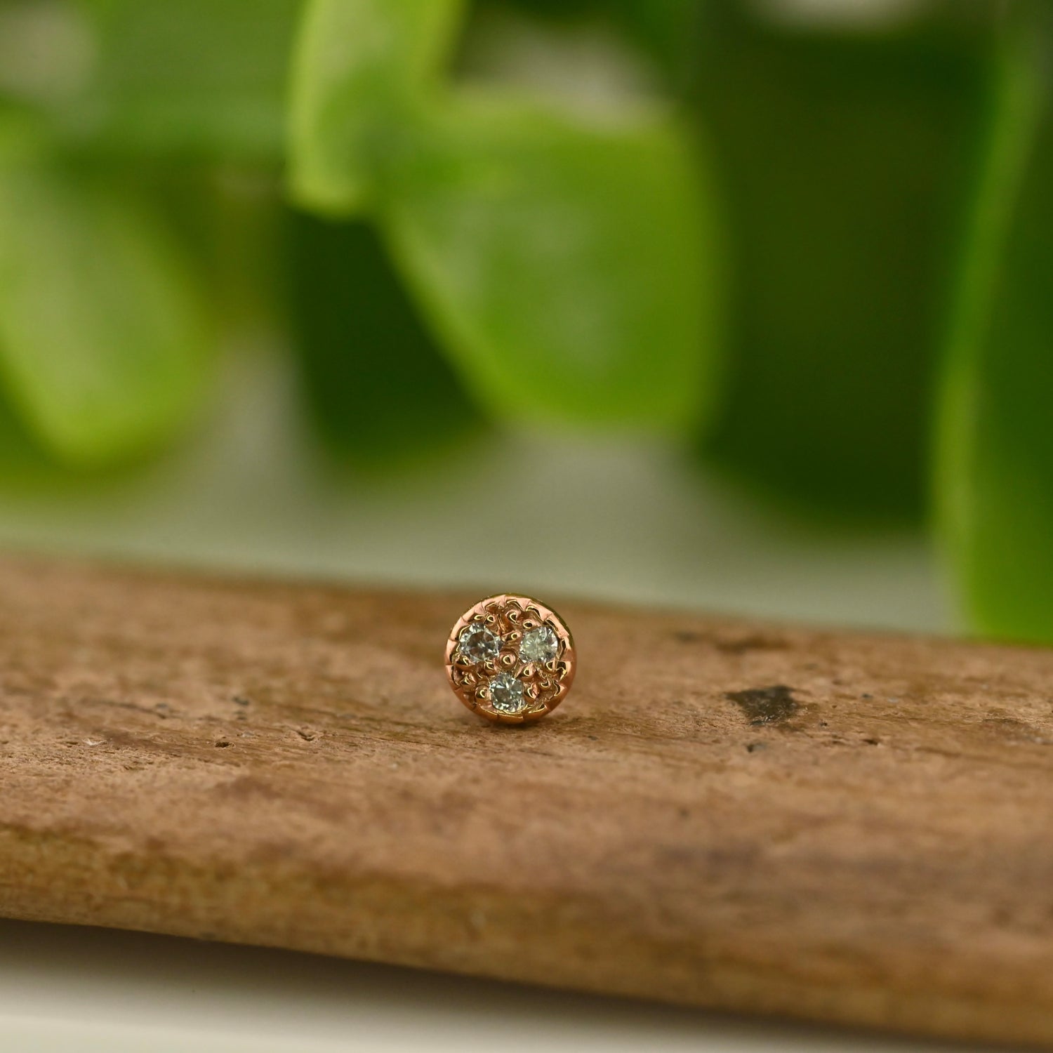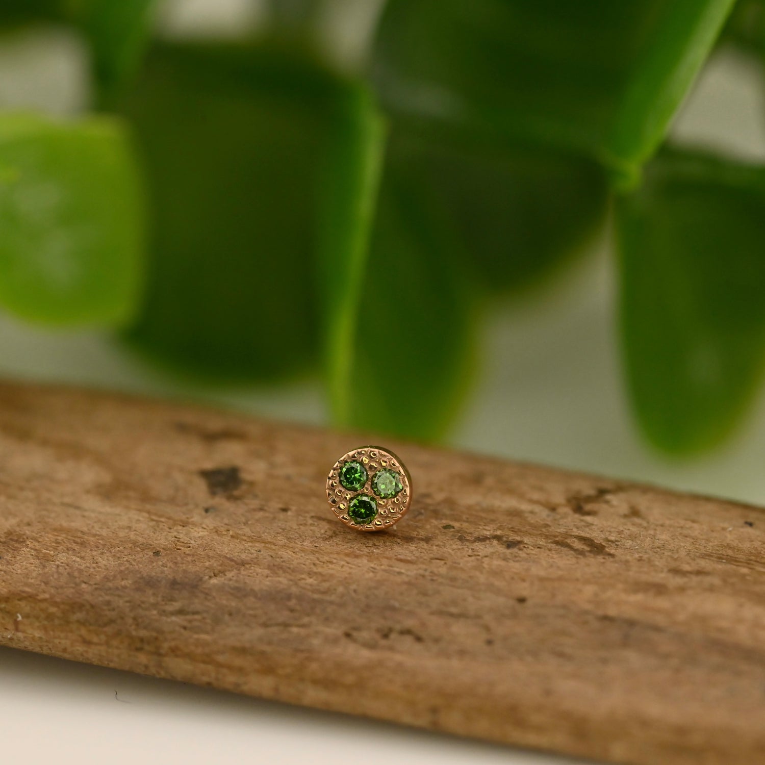 14K Gold Pave Texture Disc with (3) x 1mm Gems