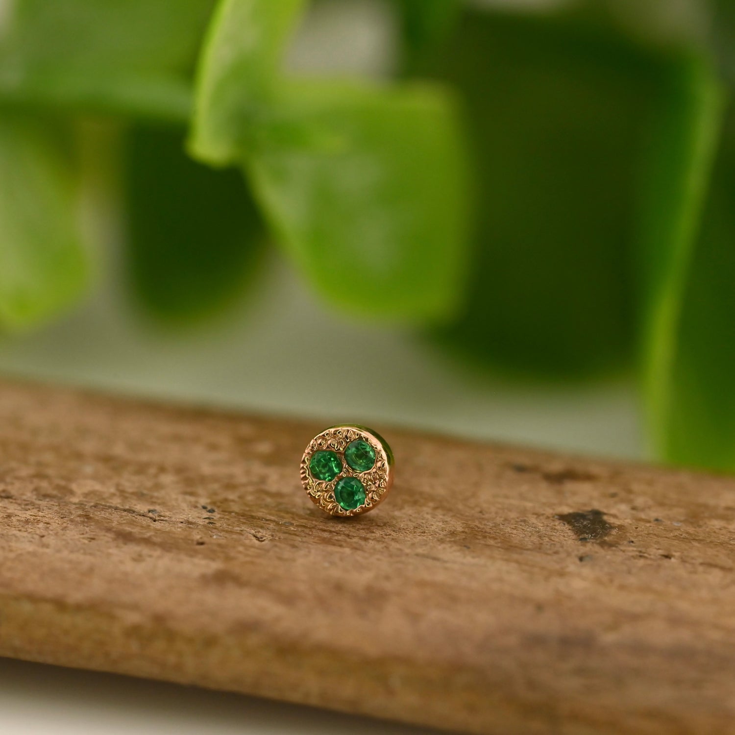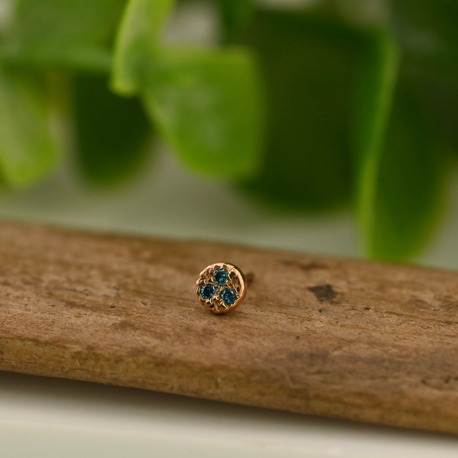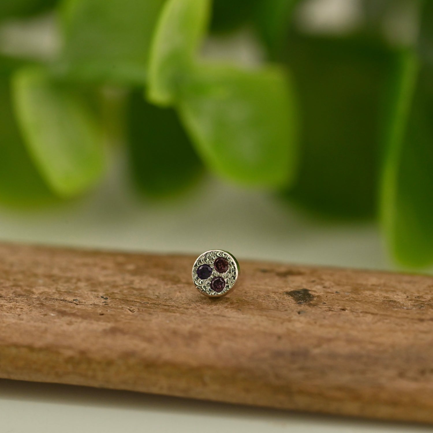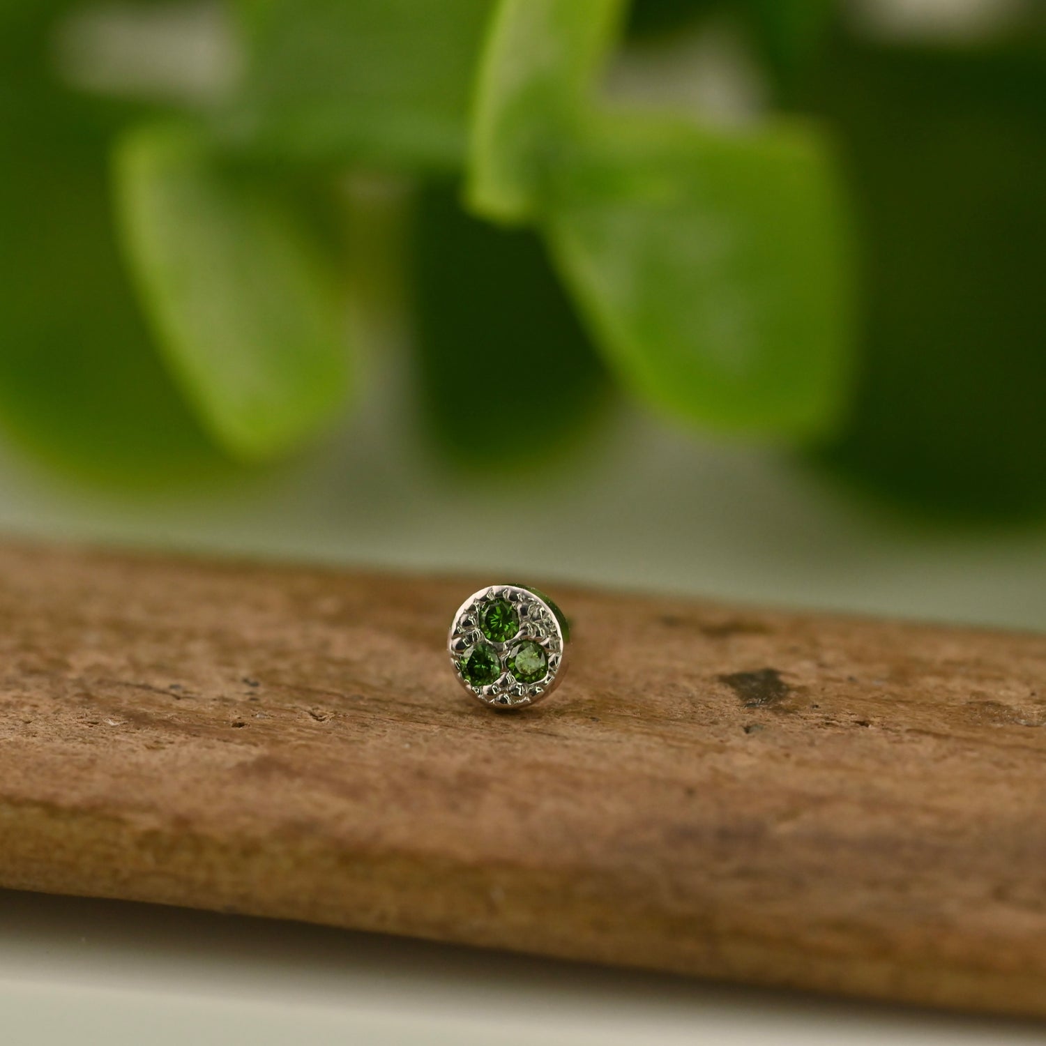 14K Gold Pave Texture Disc with (3) x 1mm Gems
