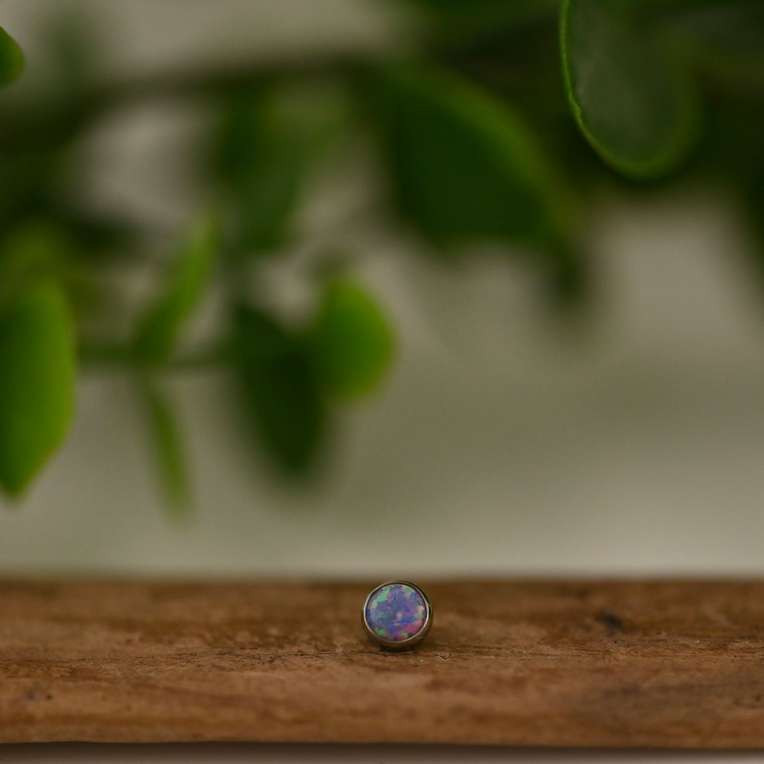 Titanium Bezel Set Gem - 14g Threaded