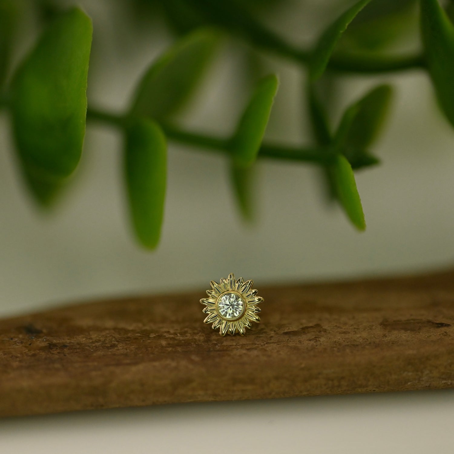 18K Gold bezel end with 2.5mm gem in center. Approx. 6.5mm total size