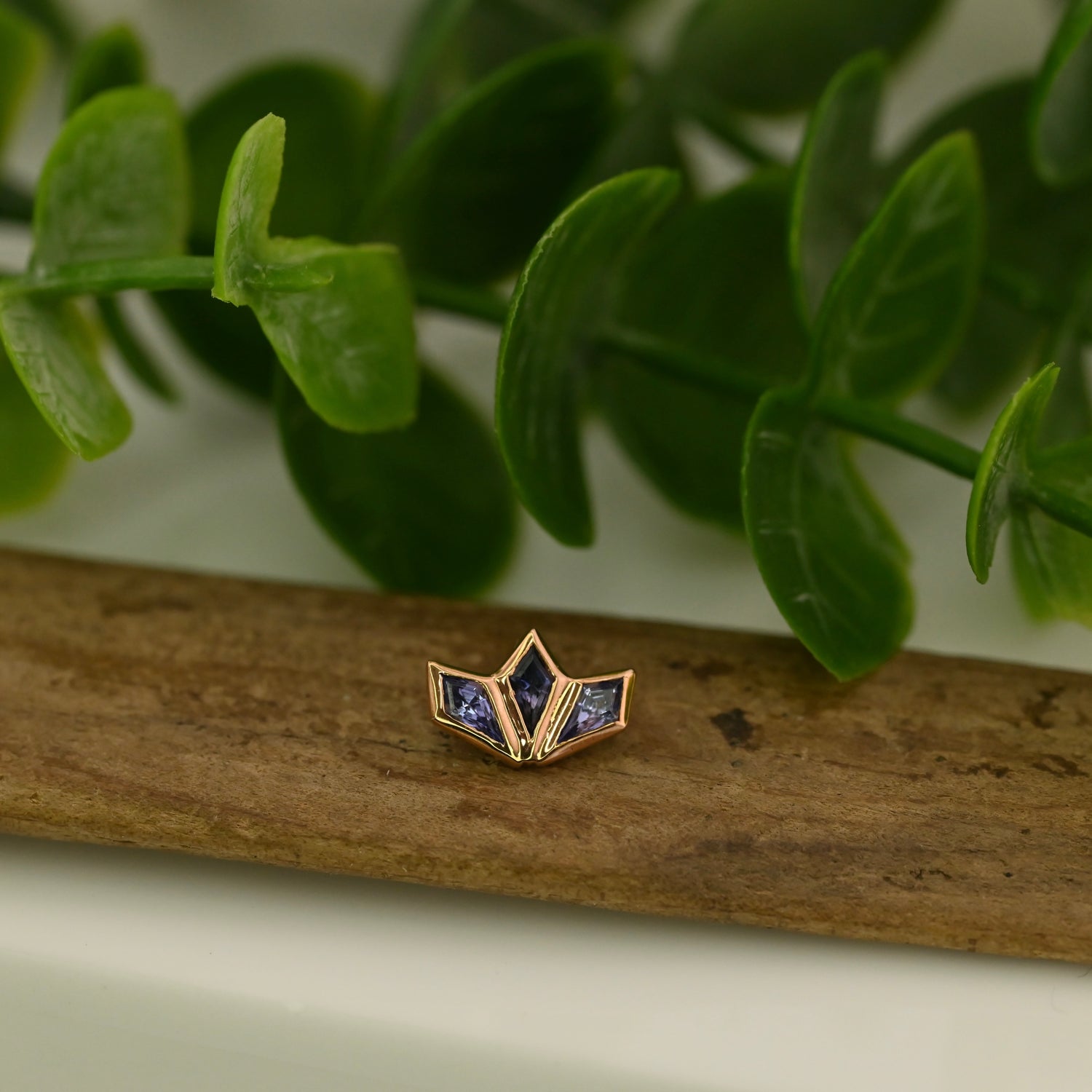 This gorgeous setting features (3) 4mm x 2mm Kite Bezel Set Gemstones with a total size 9mm x 6mm.
