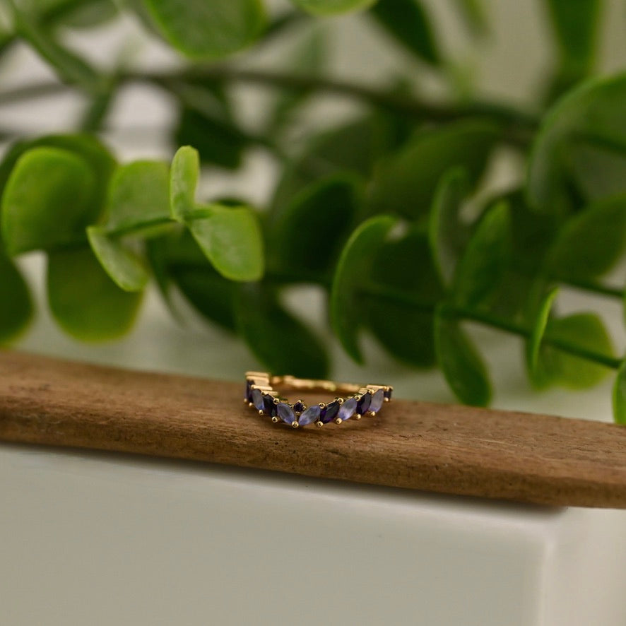 14K Gold Hinge ring with 3x1.5mm, 1.5mm and 1mm gems