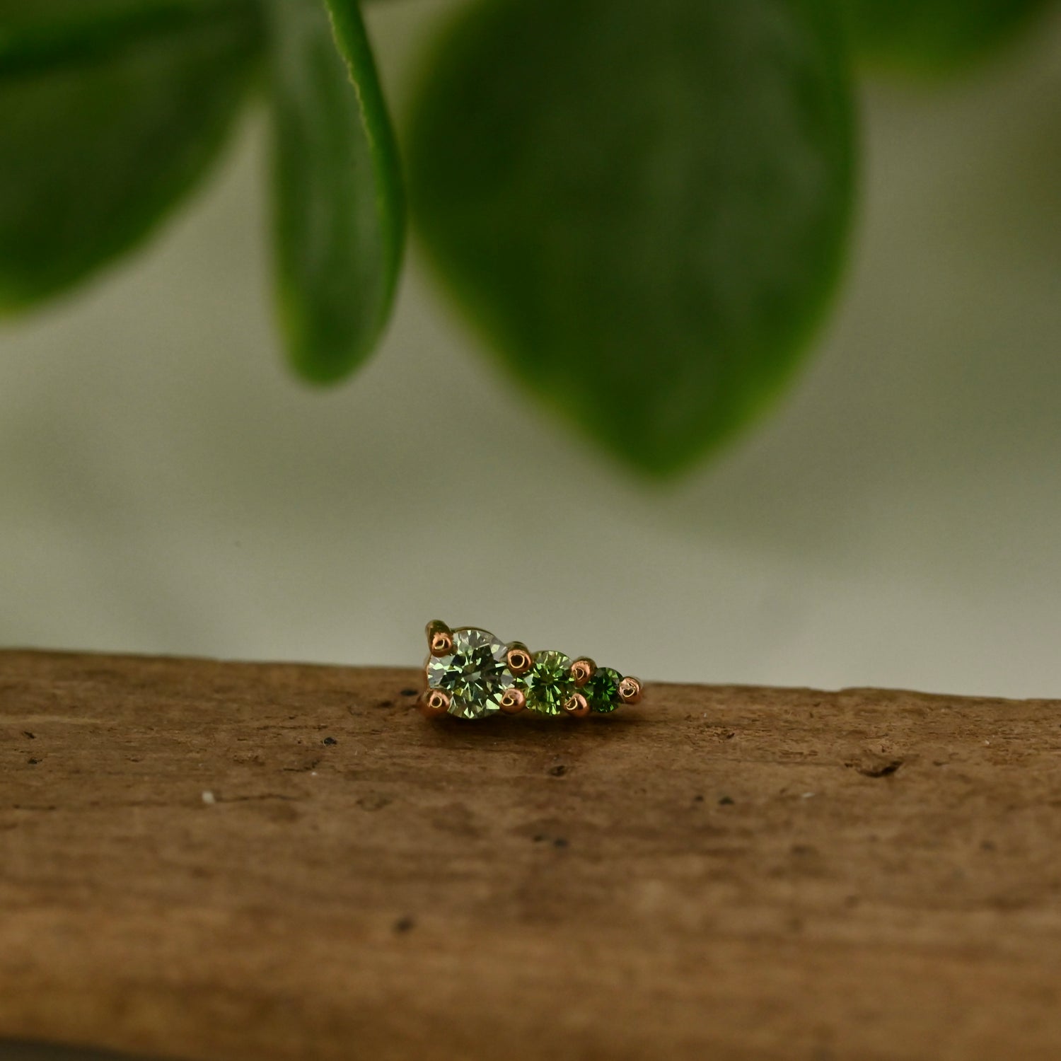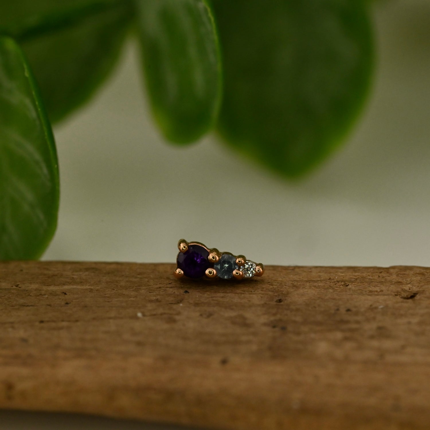This is a threadless "press-fit" style piece, fitting into 14g, 16g, and 18g posts.