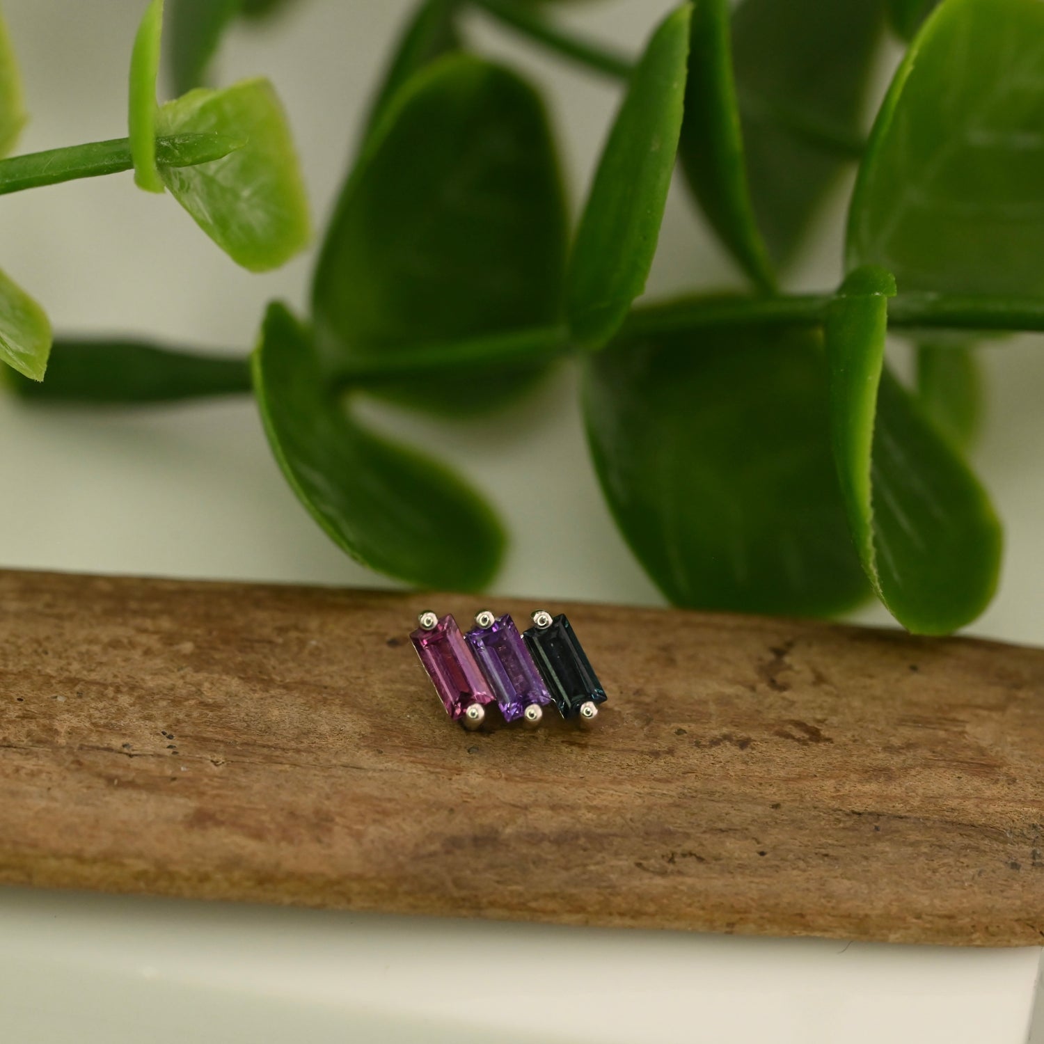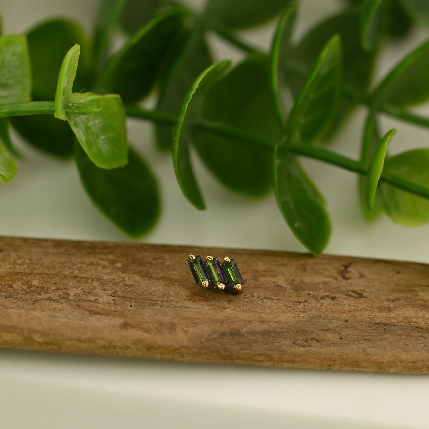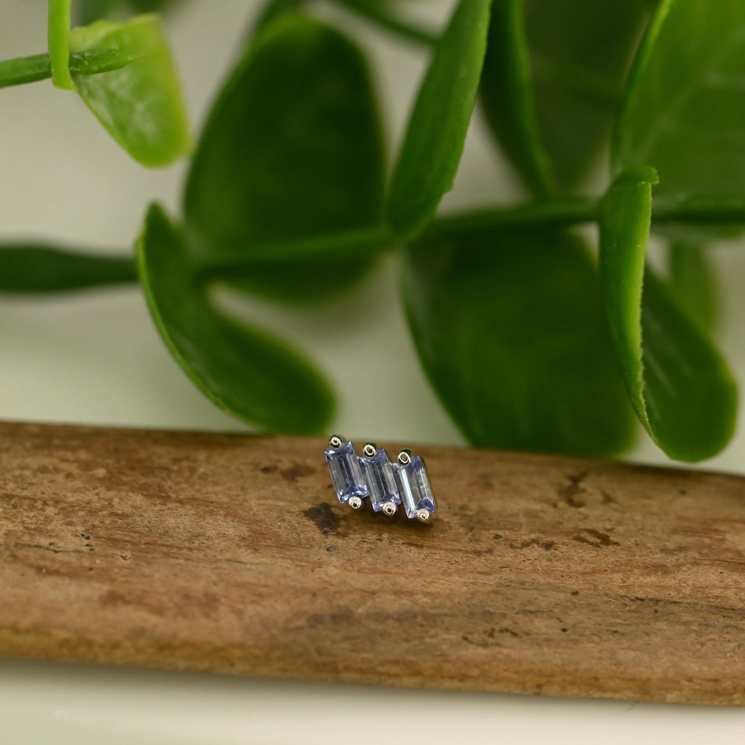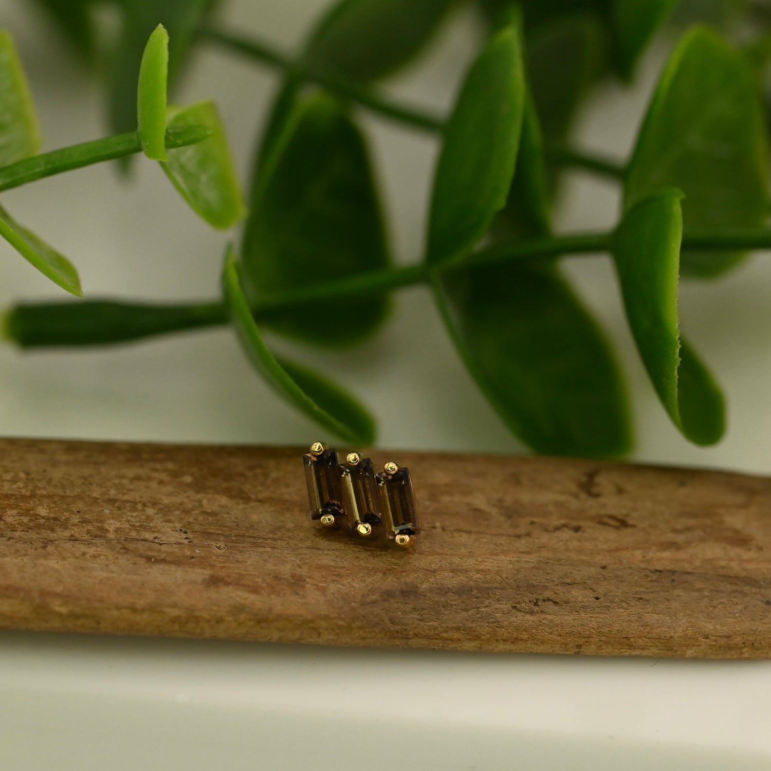Adorn yourself with the alluring Liara 3. Featuring 14K Gold with three 4mm x 2mm baguettes, this 7mm x 6mm treasure radiates exquisite beauty and courage. Show off your adventurous side with this bold statement piece.