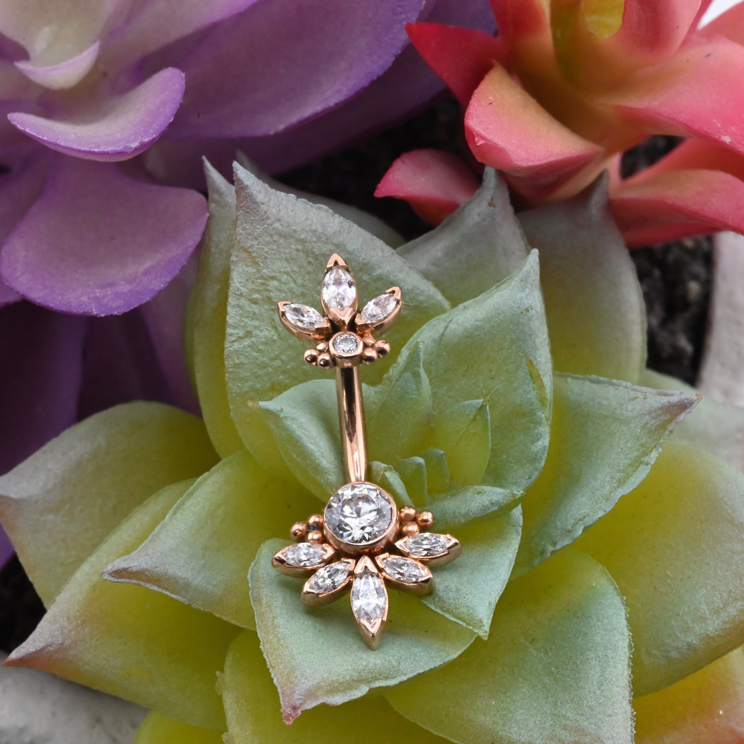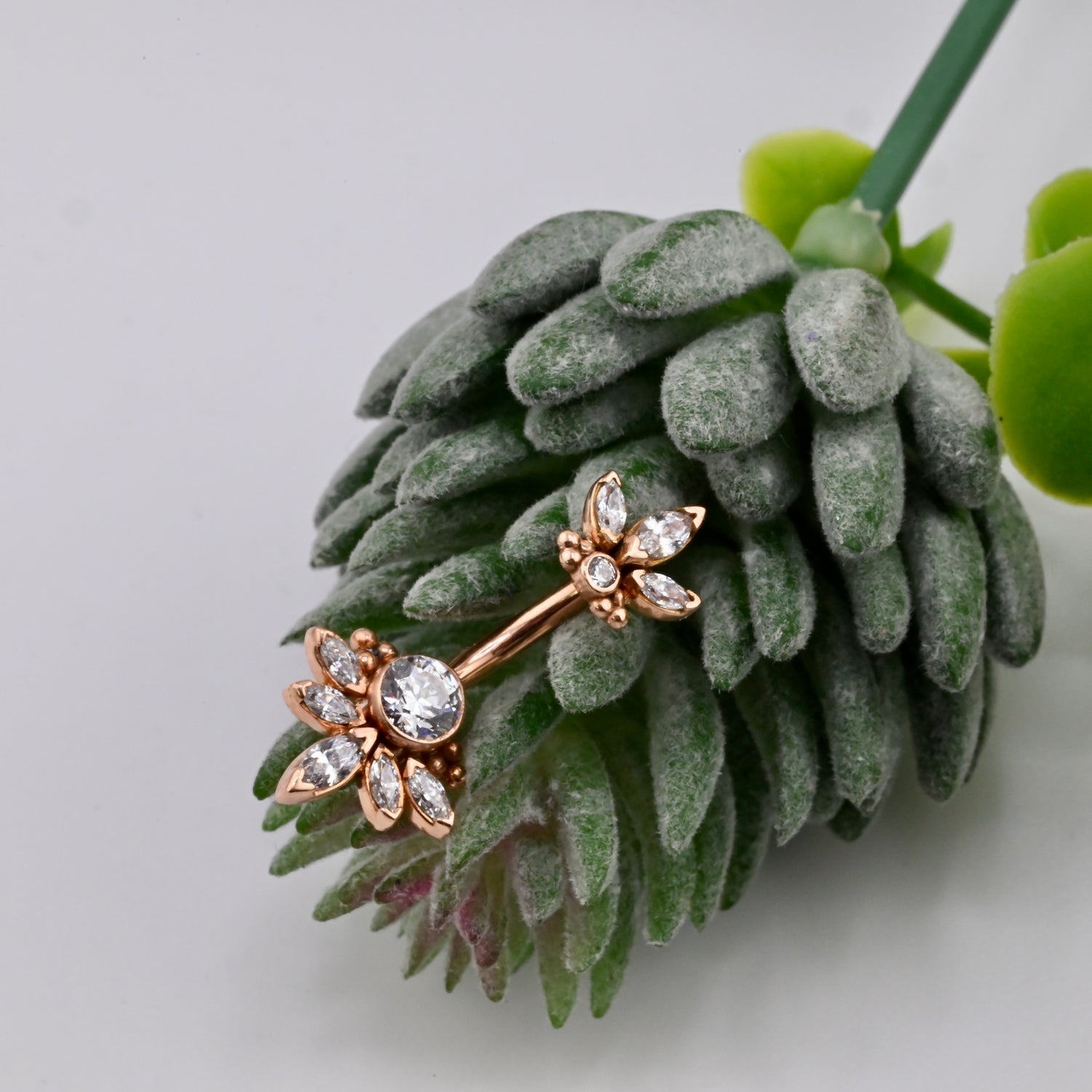 14K Gold Navel Curve with CZ gemstones.