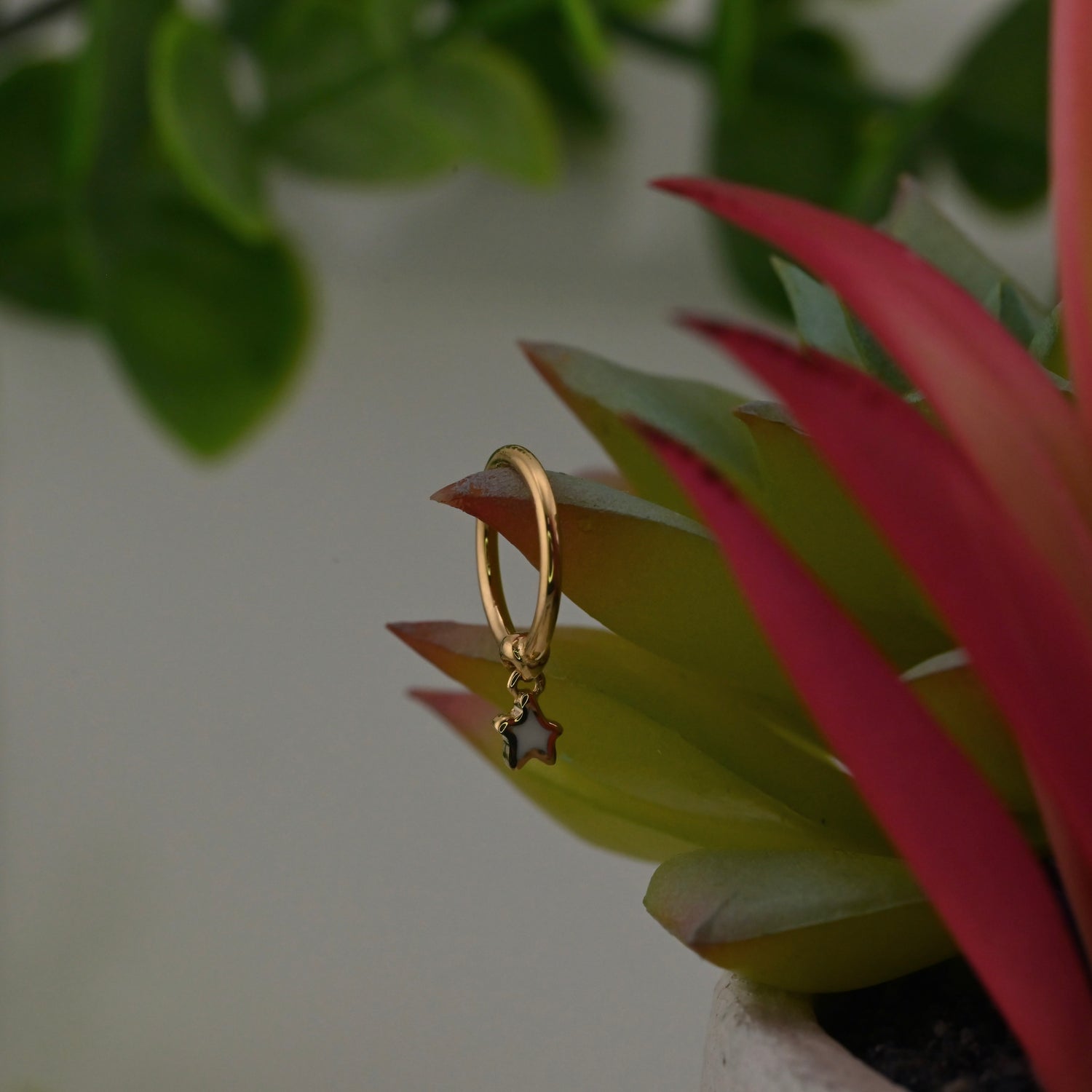 Show off your daring style with our New Thing Seam - Star ring. Crafted from 14K gold, this sleek ring features a fixed bead and white enamel charm to make a bold statement. An essential for risk-takers, it adds rebellious energy to any outfit. Get it now and have a blast!