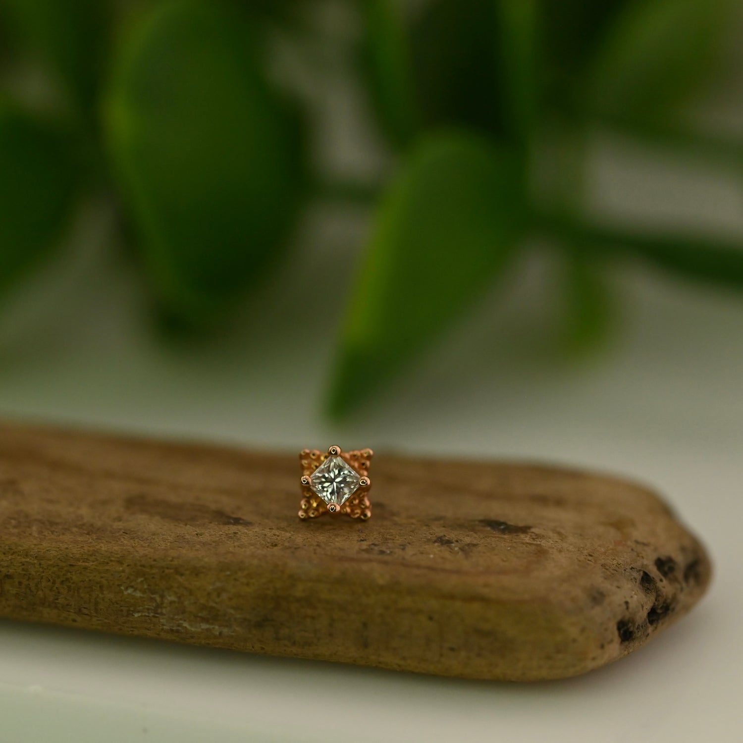 2mm Princess Prong Set Gemstone with Tiny Bead Accents
