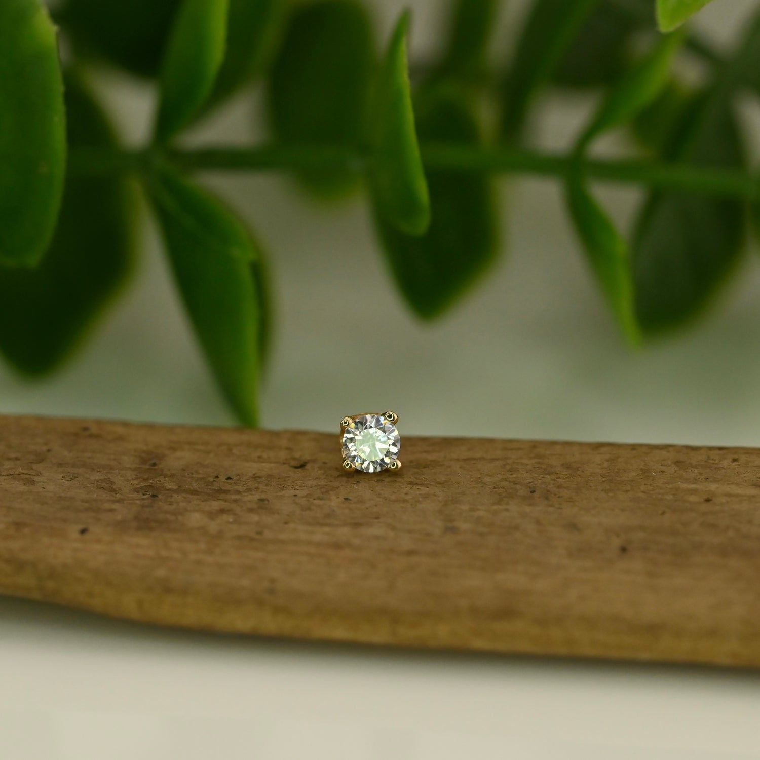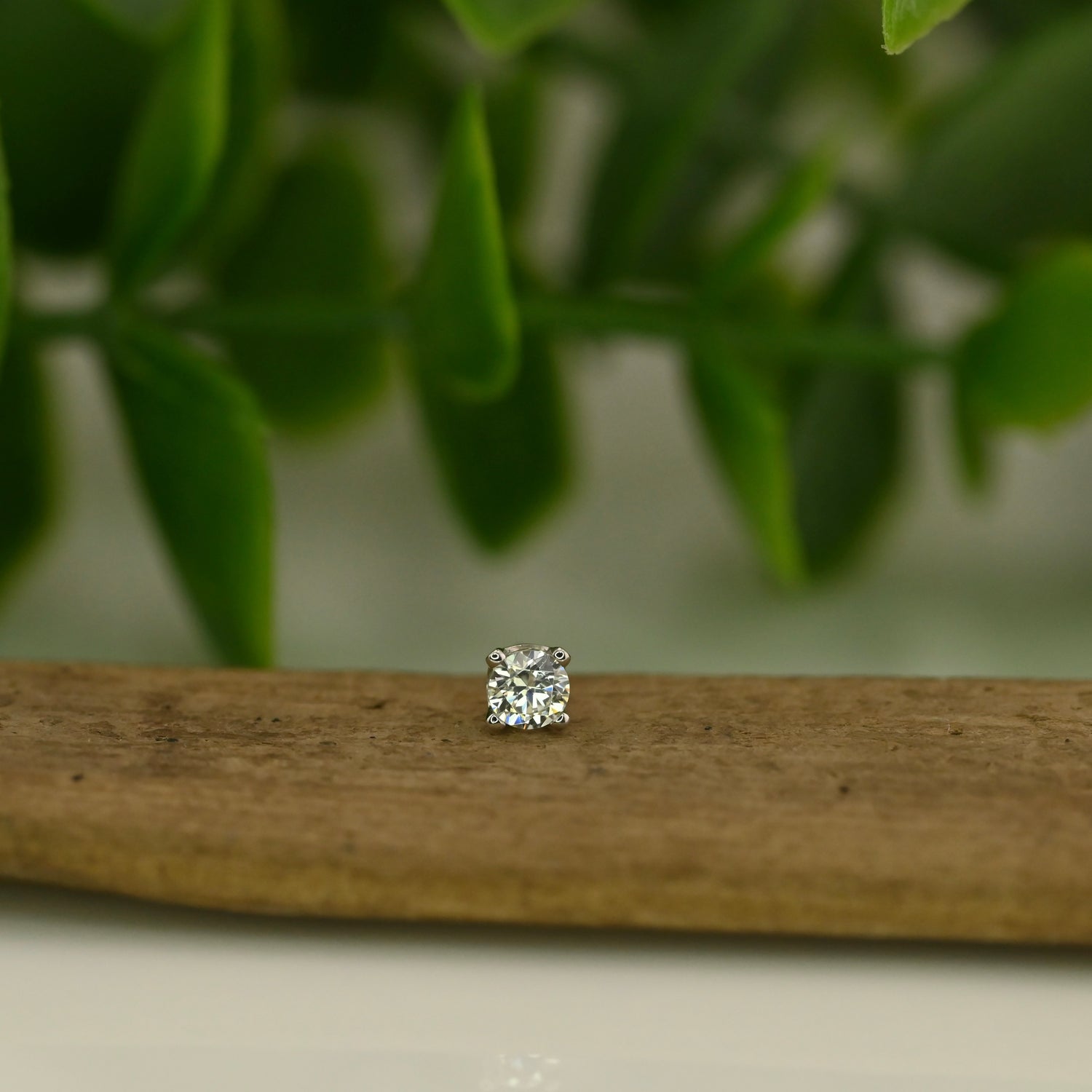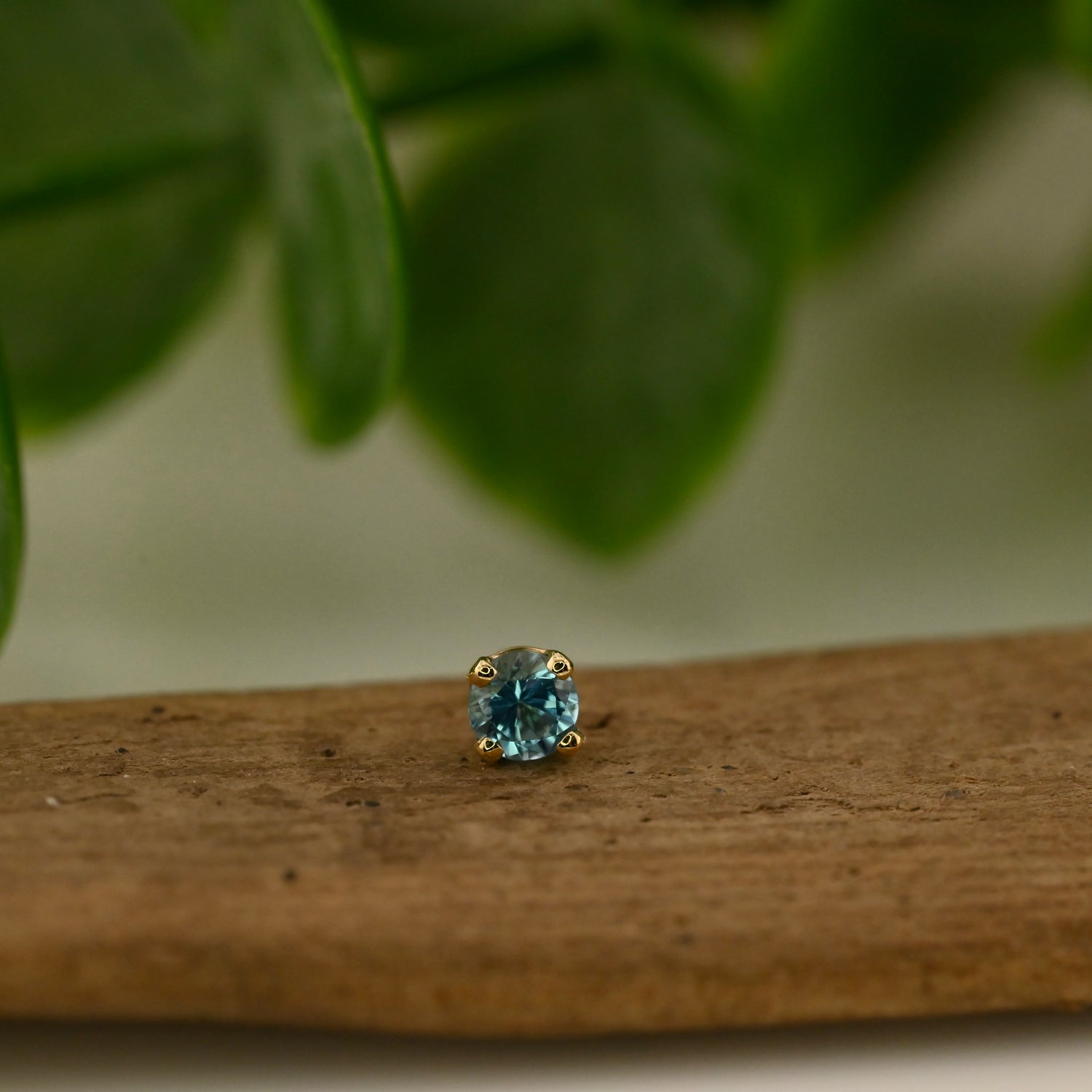 Sparkle with the Round Four Prong - 3mm prong set gem! Designed to fit seamlessly into threadless posts, its round prong design offers maximal security and a secure fit. Get ready to show off your style with this timeless classic that adds both sophistication and class to any look.