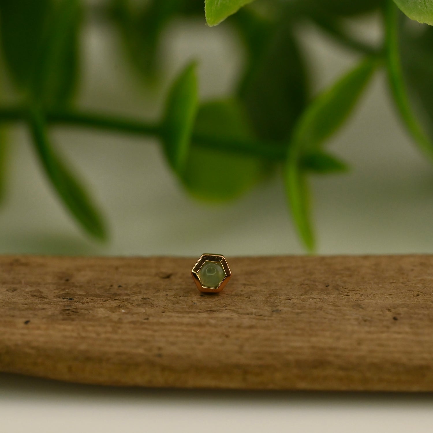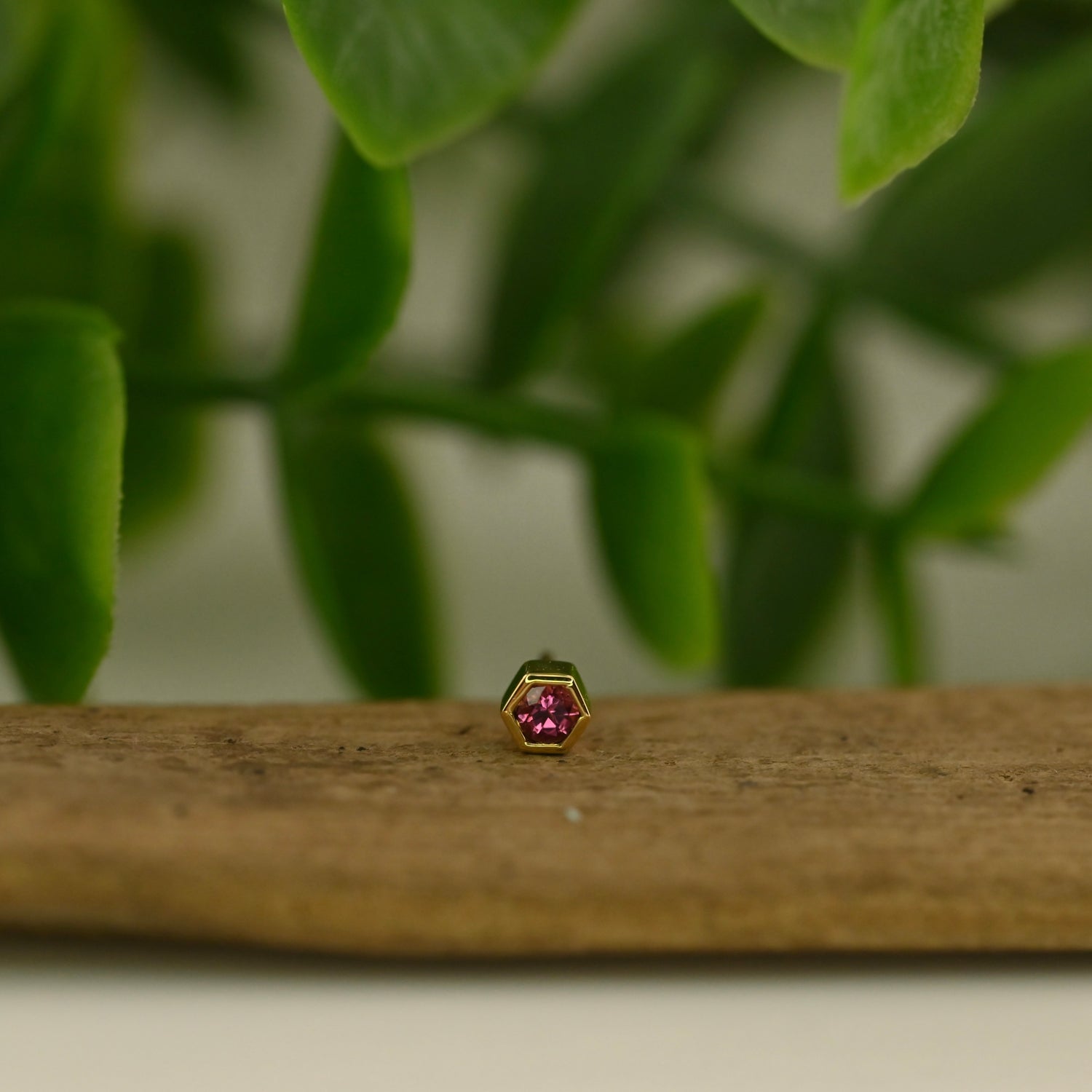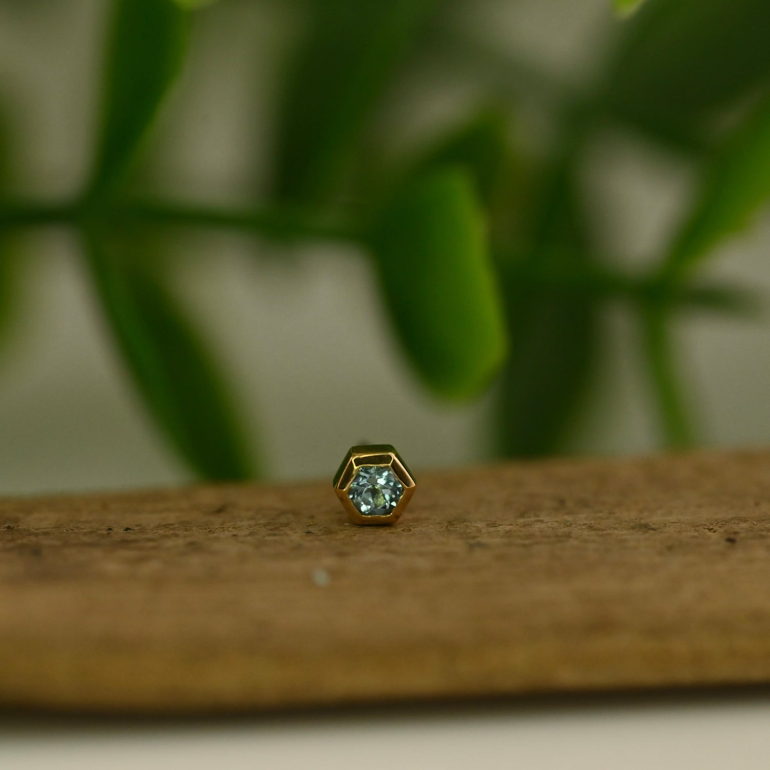 This is a threadless "press-fit" style piece, fitting into 14g, 16g, and 18g posts.