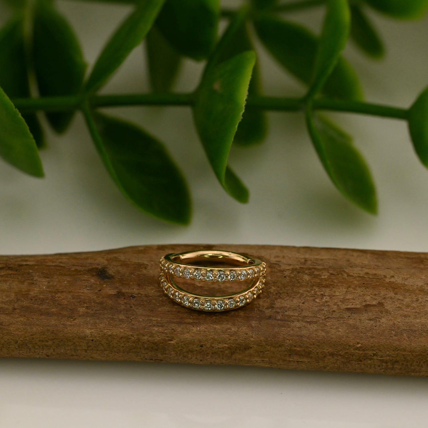2 Split Navel Oriented Rows of 1mm Round Prong Set Gems with 2mm Gap