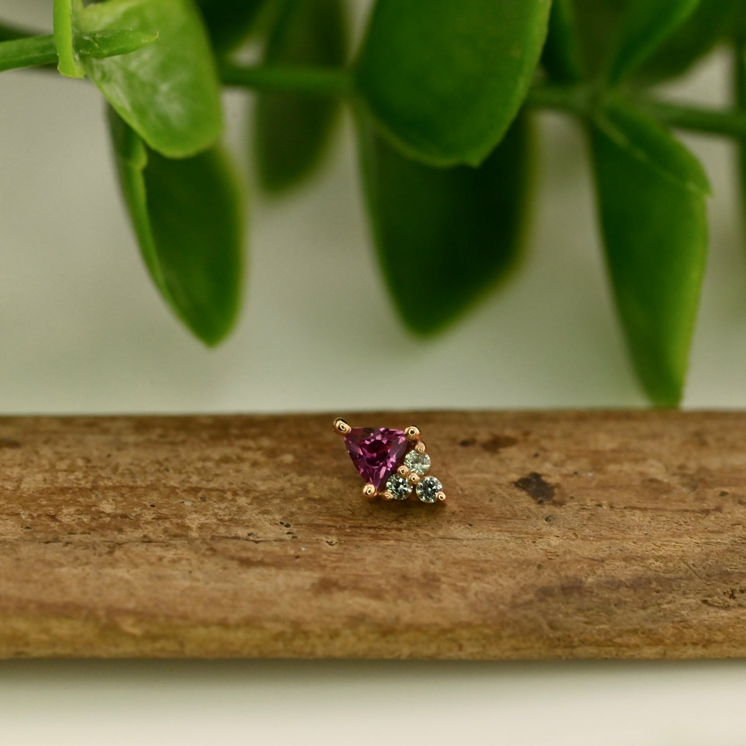3mm Trillion Cut Prong Set Gemstone with 1.25mm Tri Prong Accent
