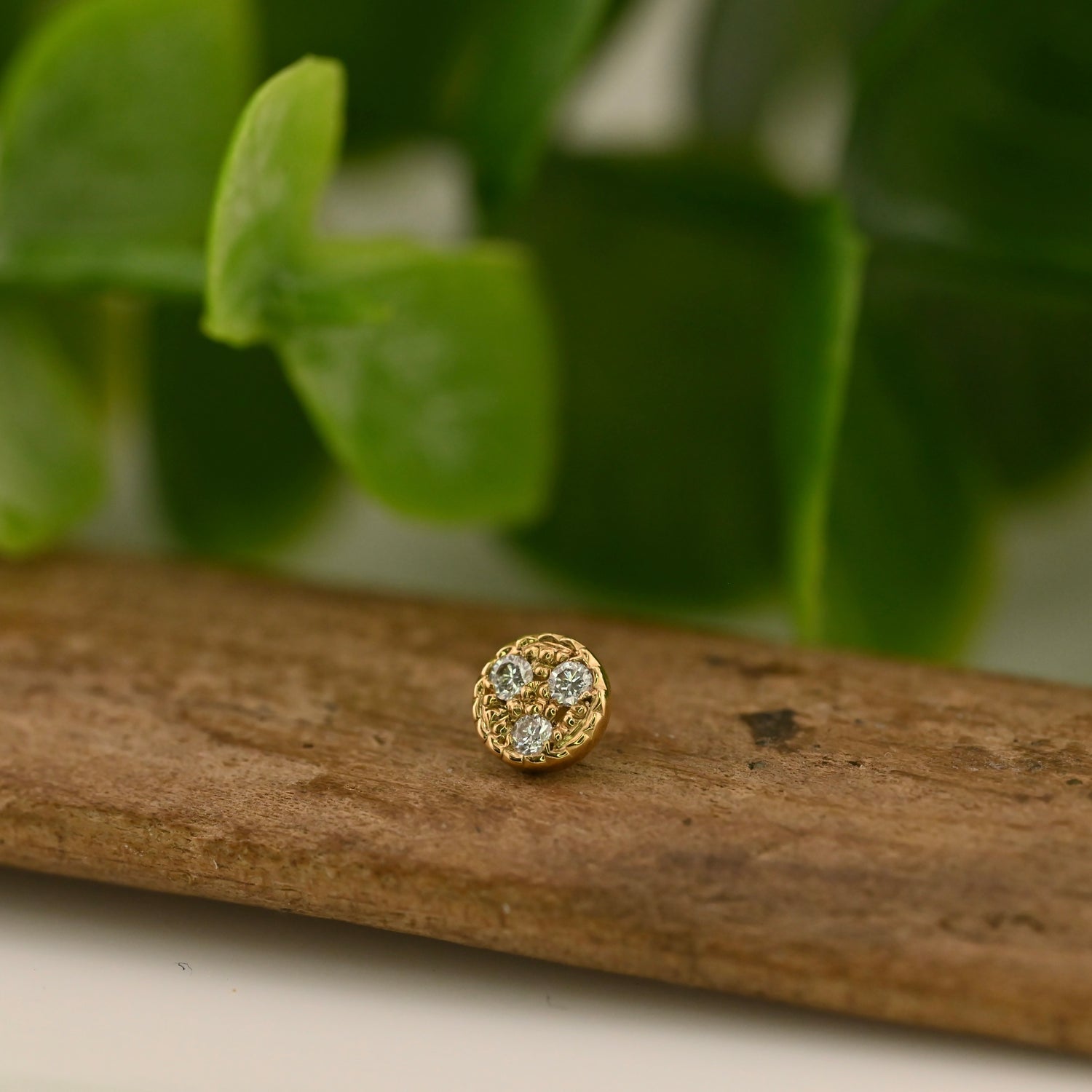 14K Gold Pave Texture Disc with (3) 1.25mm Gems