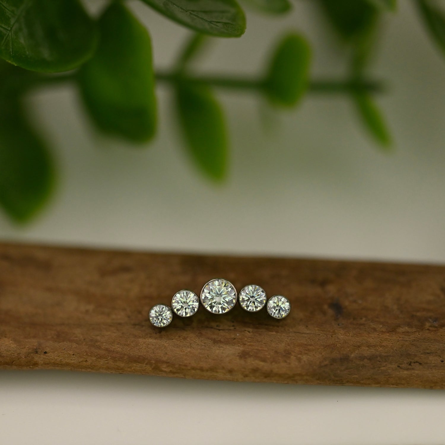 Titanium 5 gem curve with 4mm, 3mm, & 2.5mm gemstones