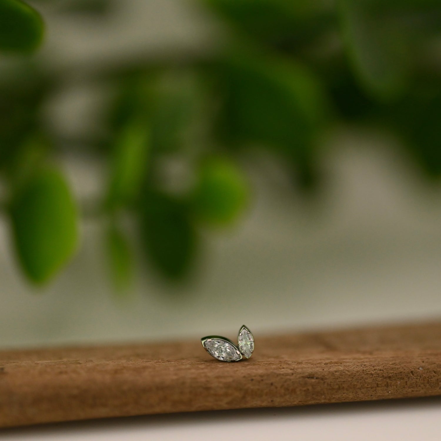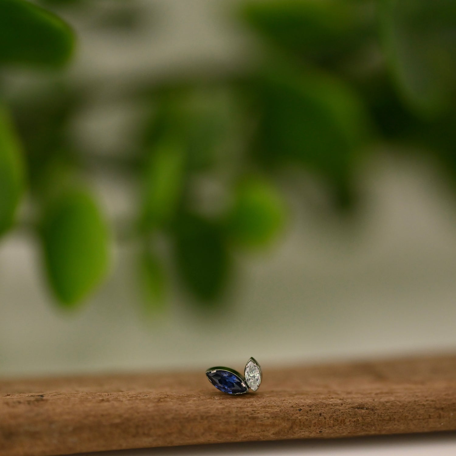 Titanium with 2 marquise cut gems, 4mm x 2mm & 3mm x 1.5mm gems