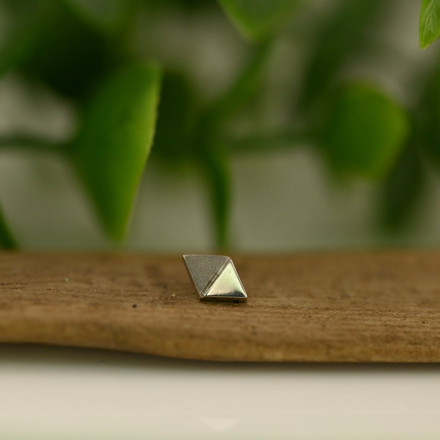 14K Gold Flat Double Triangle with Recessed Line Between. One Triangle has a High Polish Finish and the other with a Sandblasted Finish.