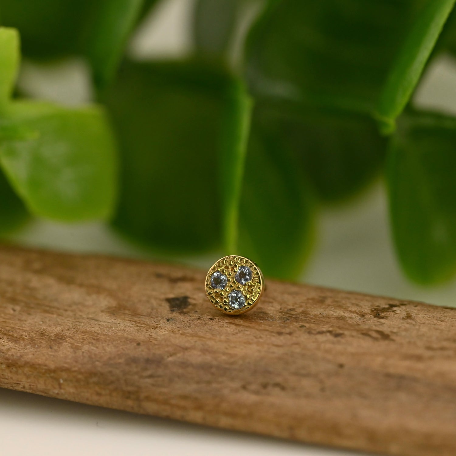 This is a threadless "press-fit" style piece, fitting into 14g, 16g, and 18g posts.