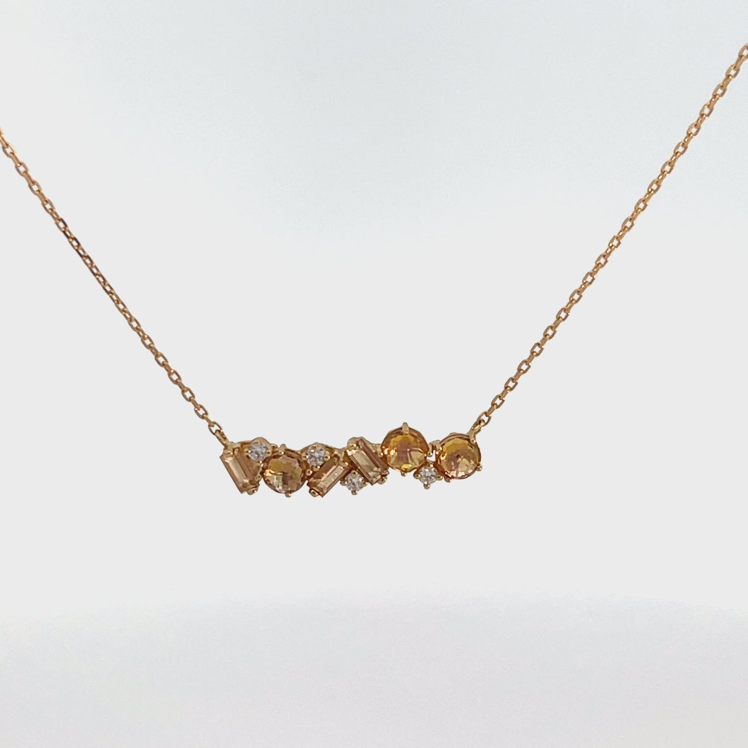 14K Gold Necklace with a mixture of (3) 4mm Round gemstones and (3) 4x2mm Baguette gemstones on Fireworks setting. with 0.08ct Diamond Detail