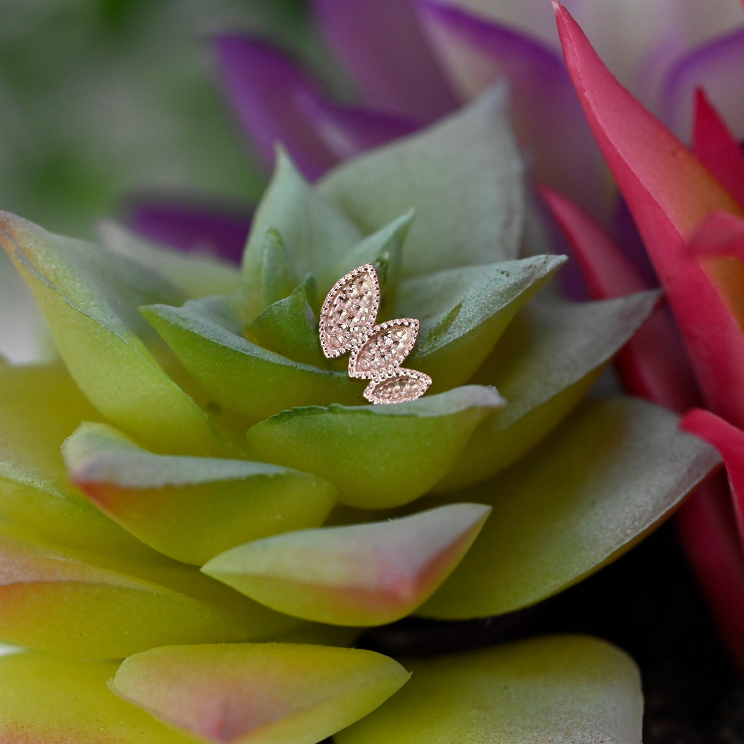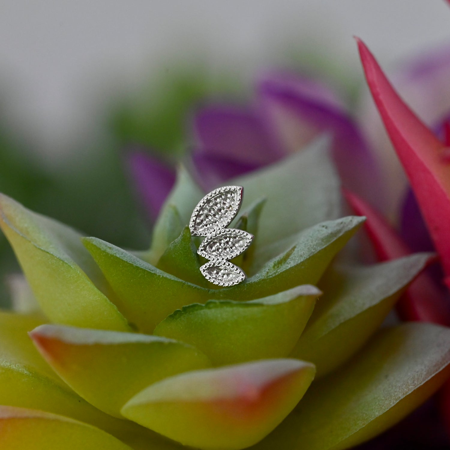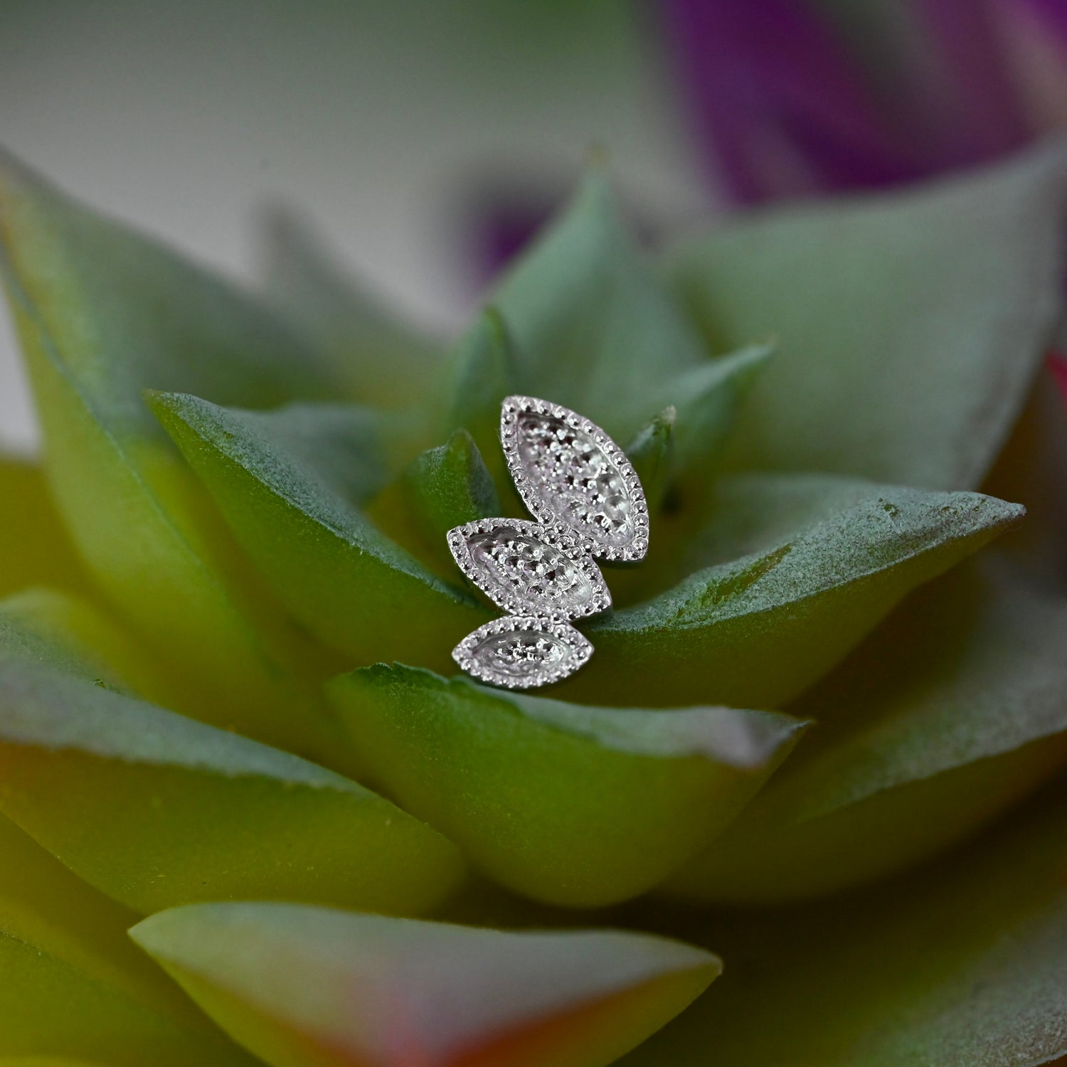 14K Gold 8mm x 5mm with 3 Marquise shapes with raised millgrain edges and hammered texture in the relief. Designed by Agave in Bloom.