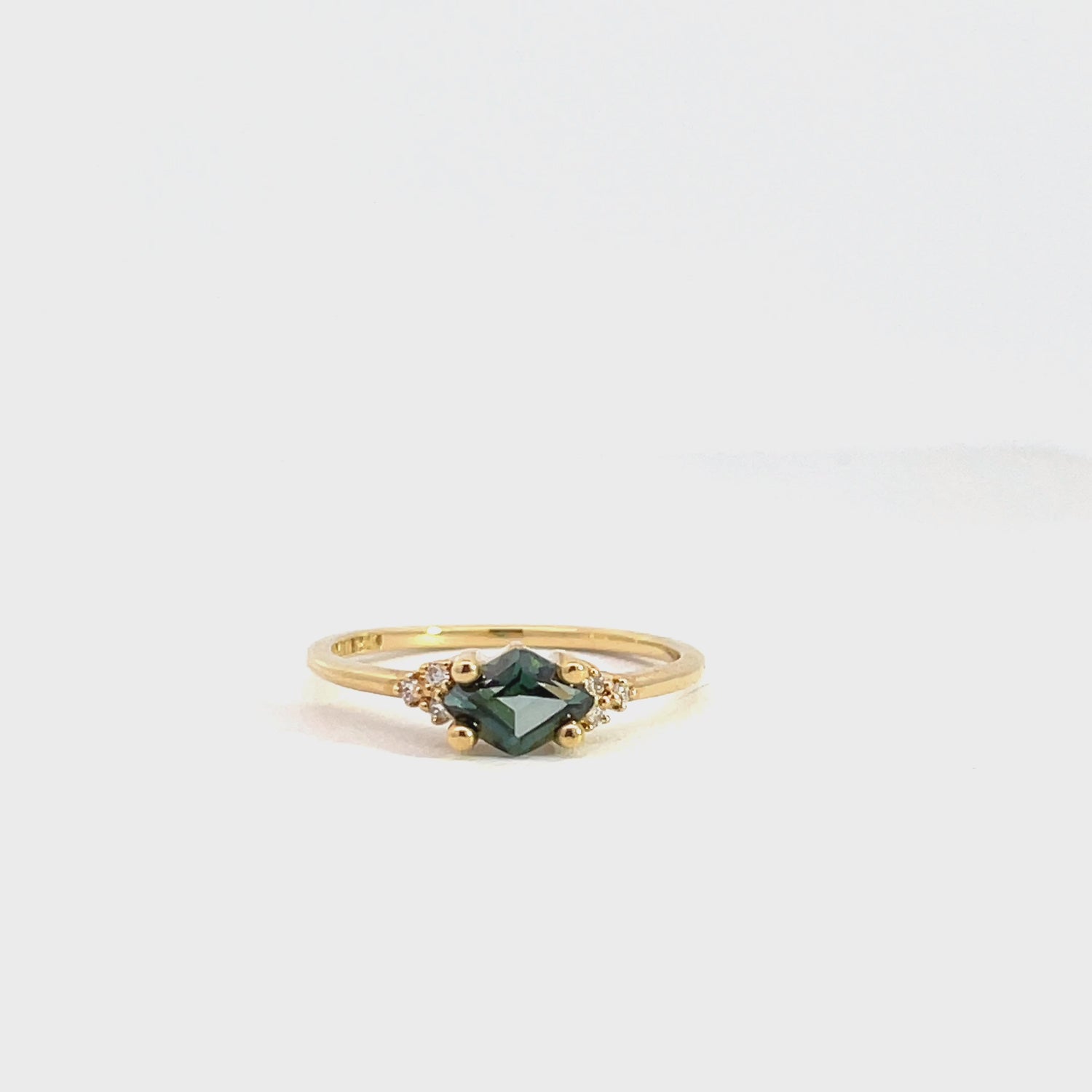 14K Gold Ring with (1) 7x5mm Diamond Shaped Gemstone Center and 0.04ct Diamond Detail.