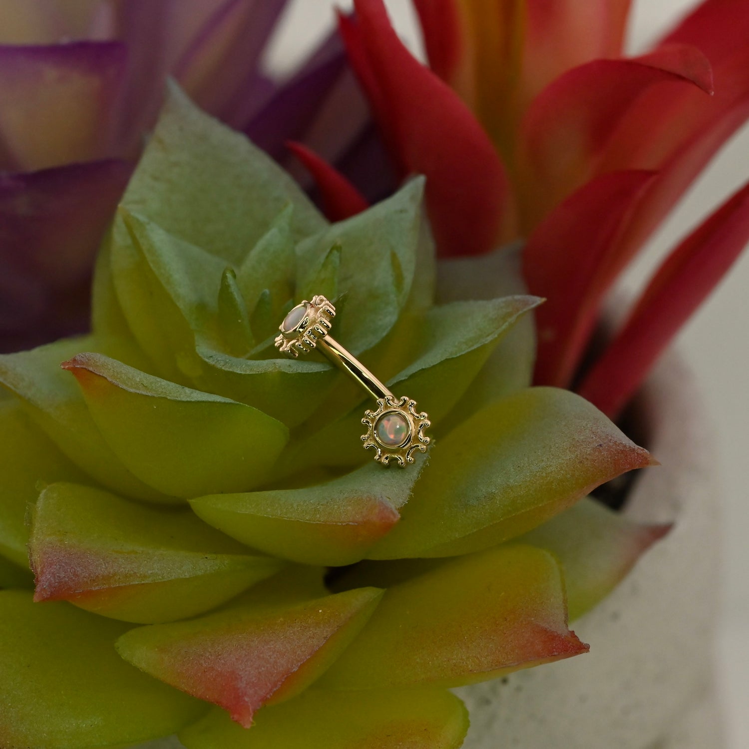 14K Gold J Curve with 3.5mm Firenze Top and 4.5mm Firenze Bottom - Both Sides Threaded