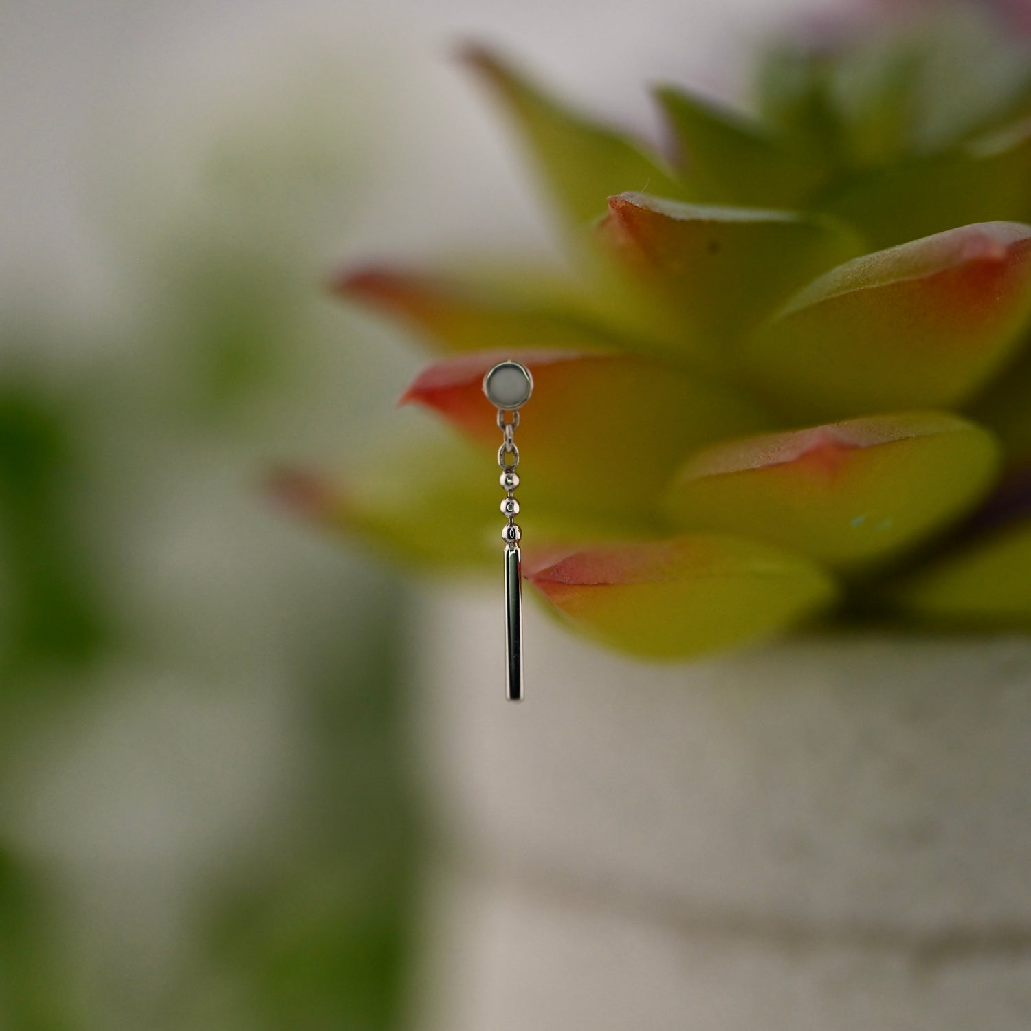 This is a threadless "press-fit" style piece, fitting into 14g, 16g, and 18g posts.