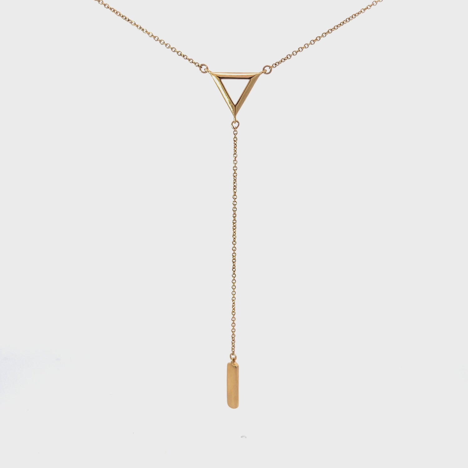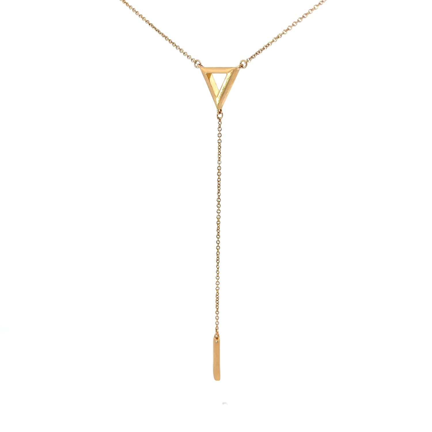14K Gold Y Necklace with a Triangle and a Bar dangle.