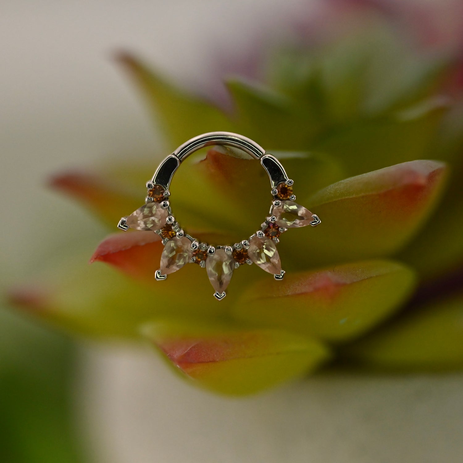 14K Gold Hinge Ring with Alternating 1.5mm Round Gems and 4mm x 2.5mm Pear Gems.