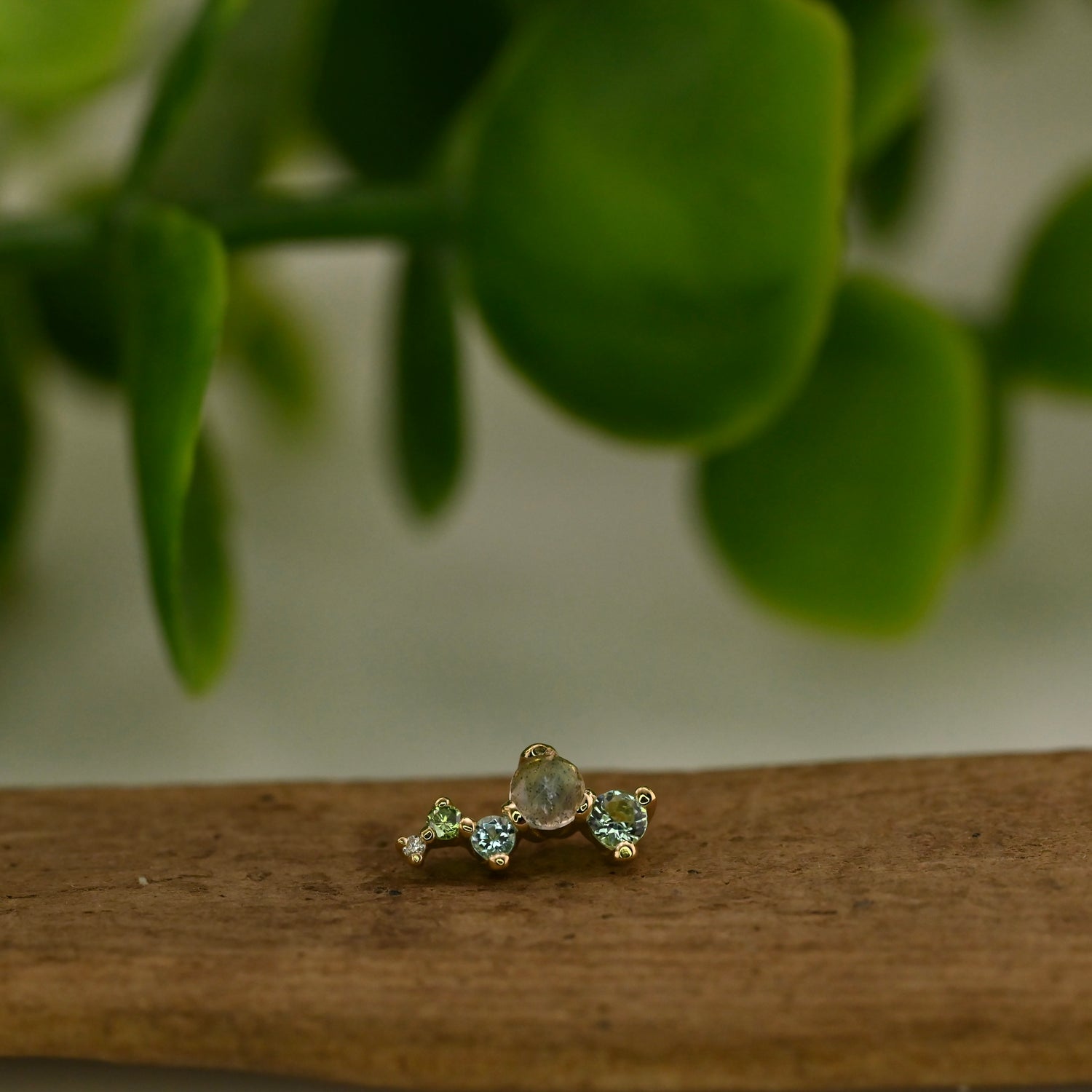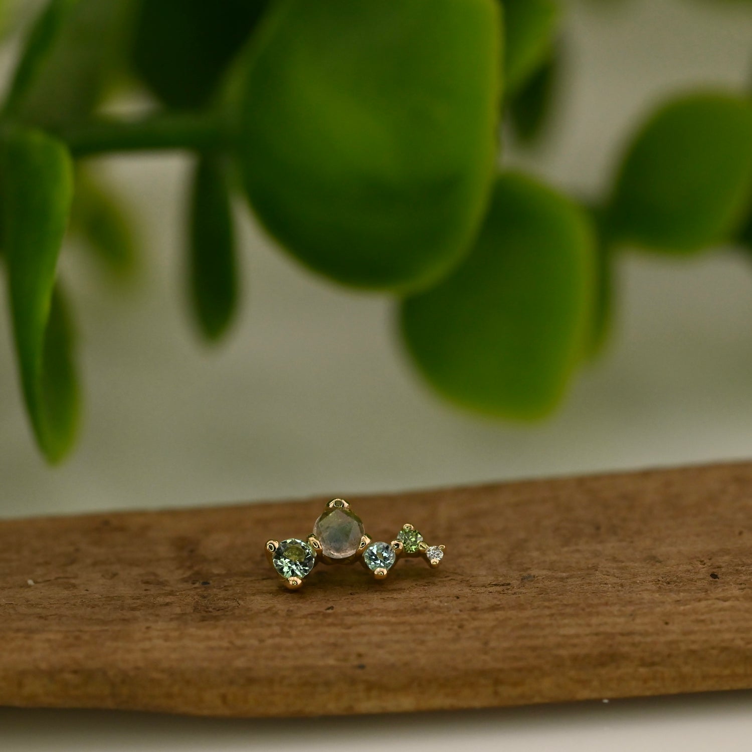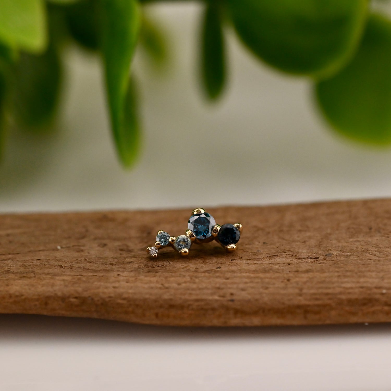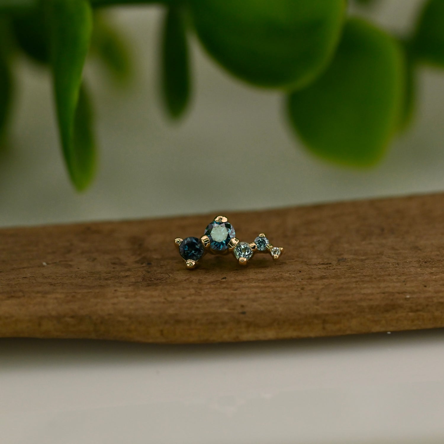 14K Gold prong cluster with 2.5mm, 1.5mm, 1.25mm & 0.8mm gems