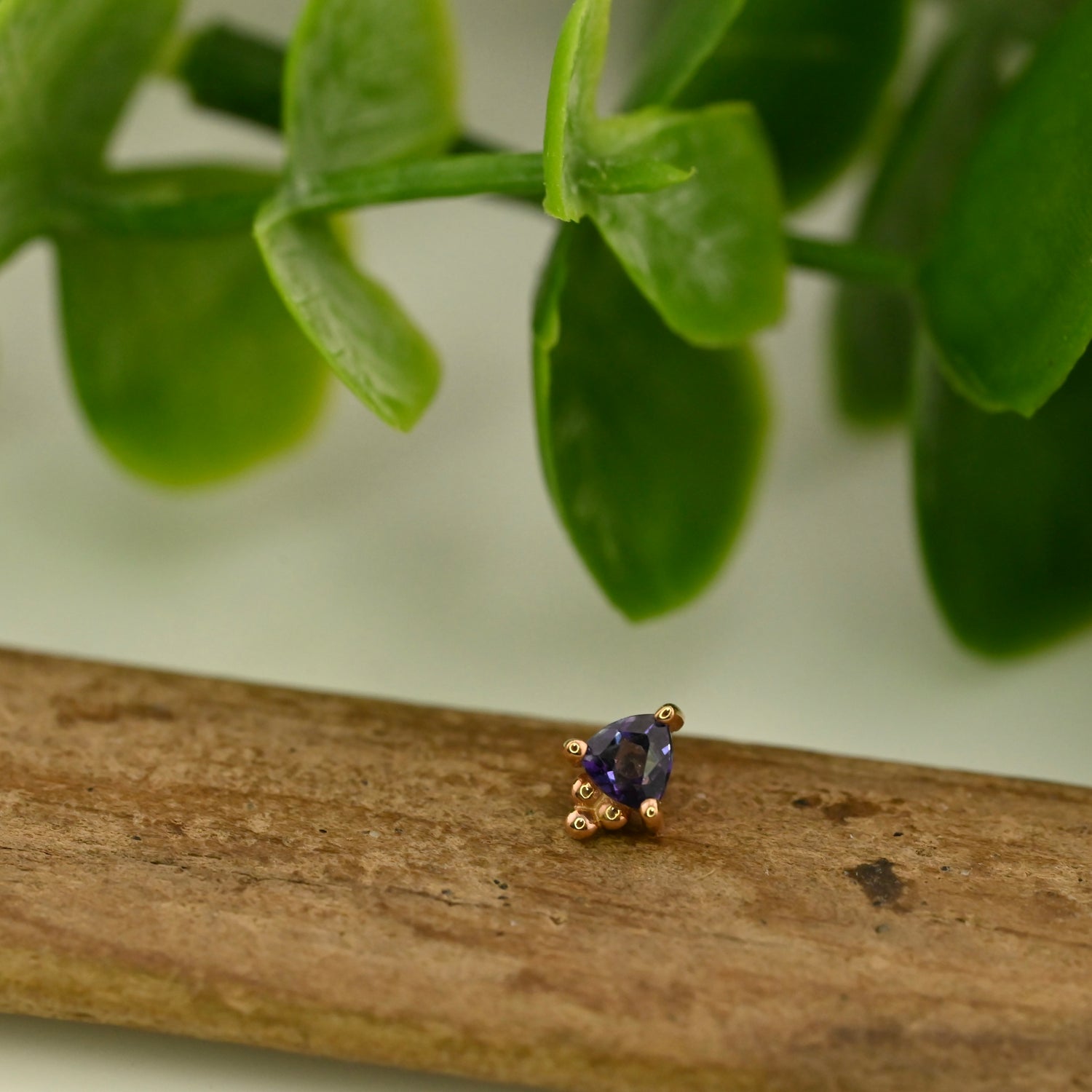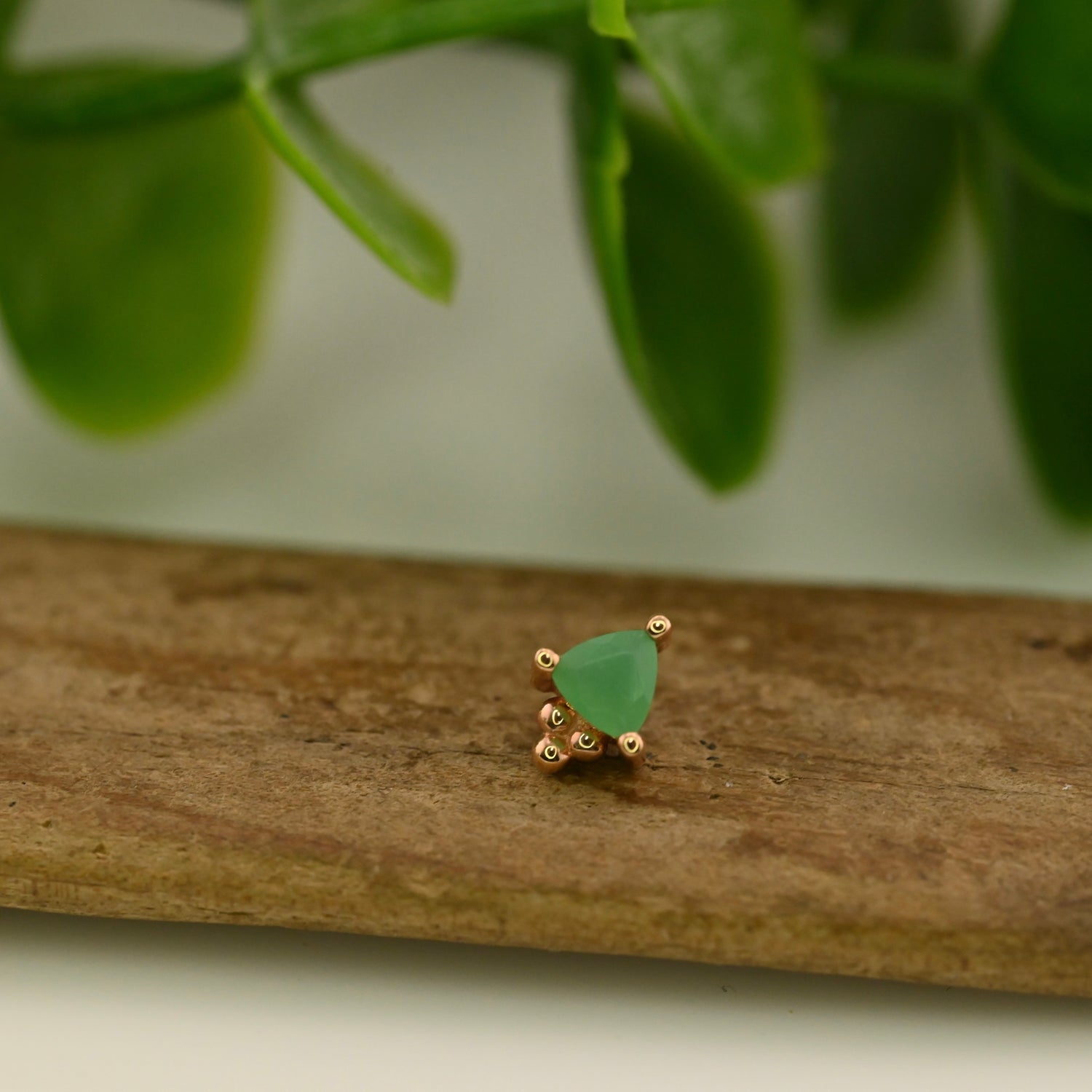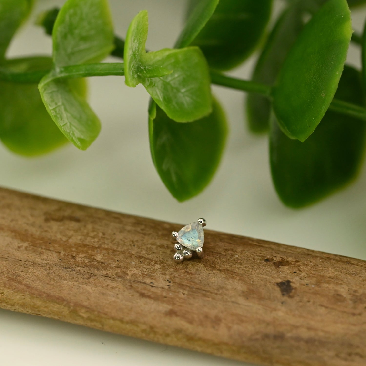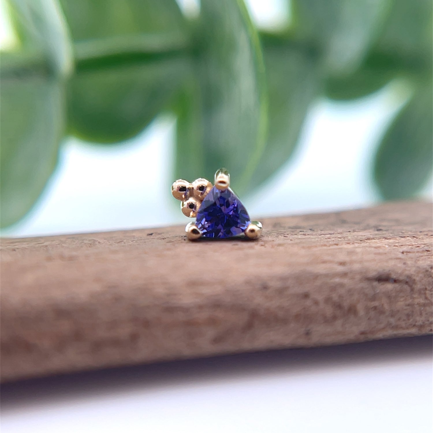 3mm Trillion Prong Set Gemstone with 1.25mm Tri Bead Accent