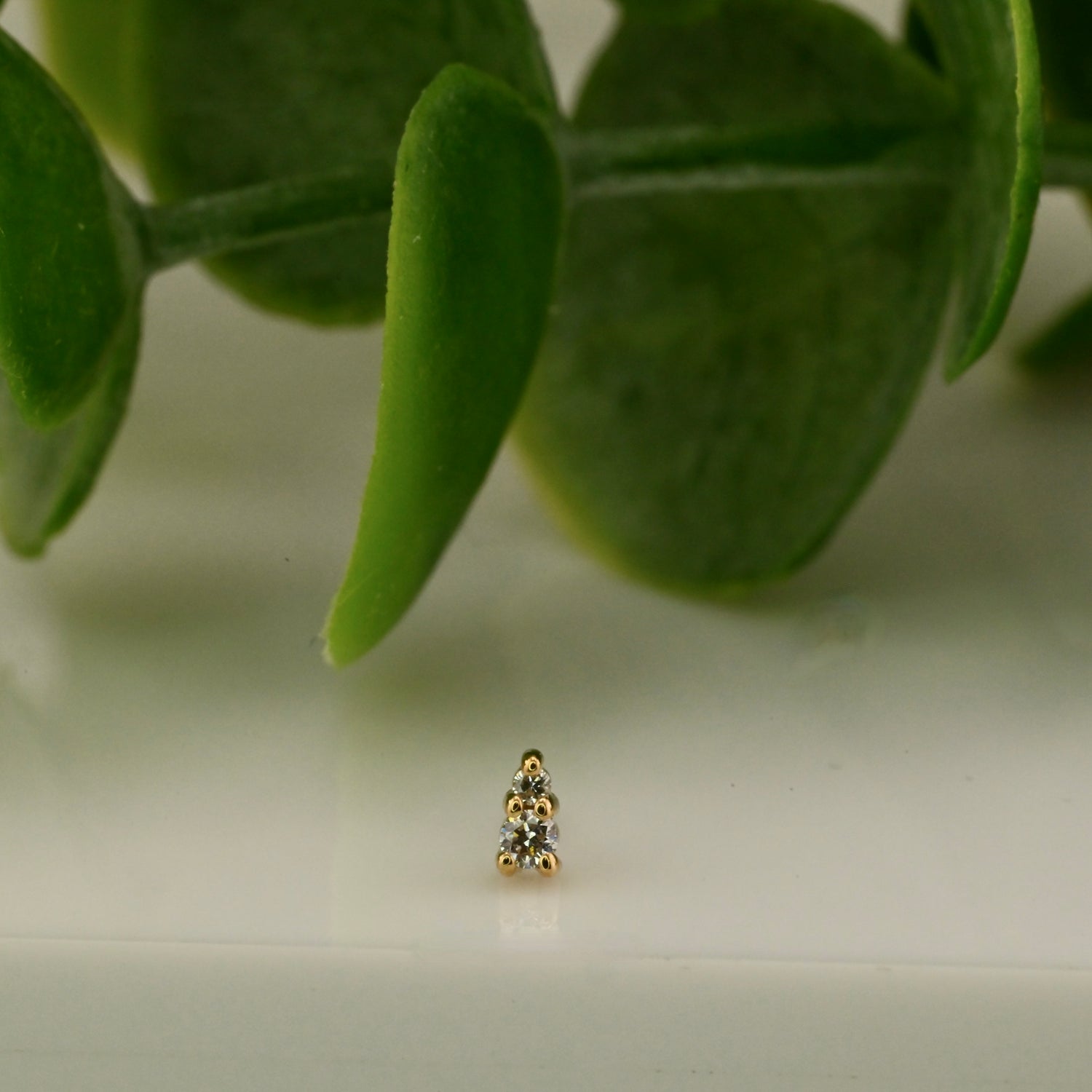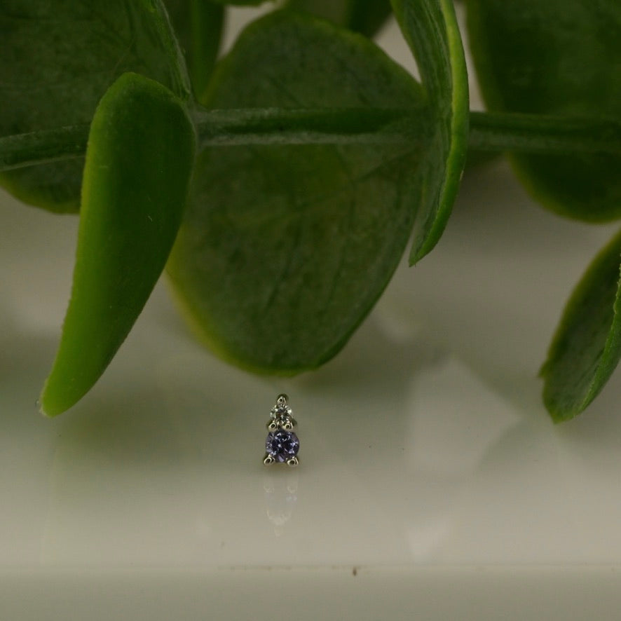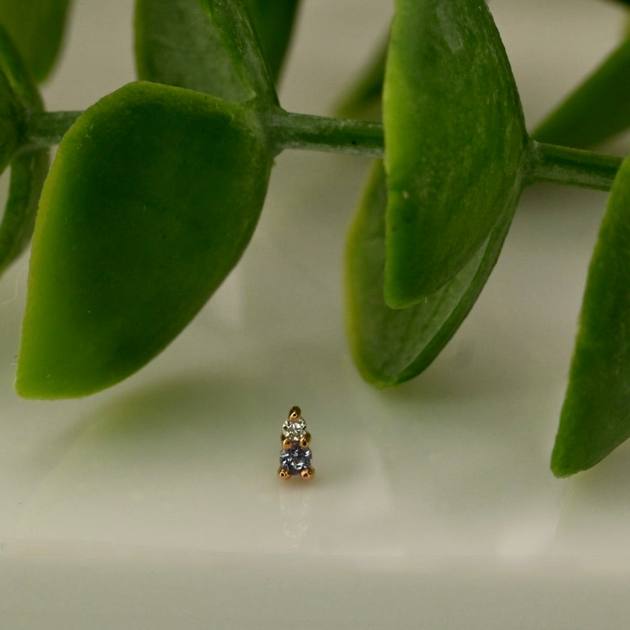 14K Gold with a 1.5mm Gem and a 1mm Gem